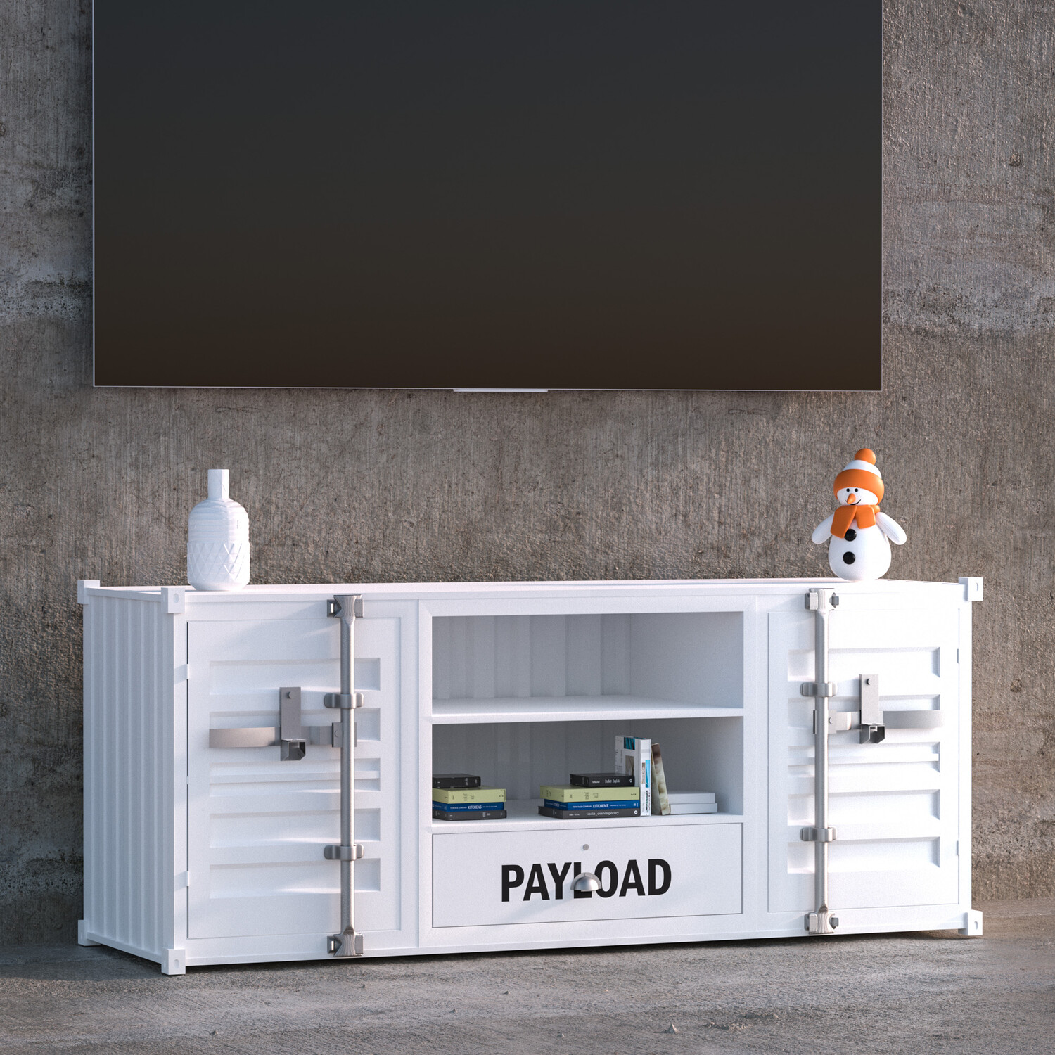 The perfect blend of industrial flair and functional design, crafted to resemble a shipping container, this unique Shipping Container Media StandTV stand features robust storage options on either side, ideal for keeping your living space organized and clutter-free. At the center, a smoothly sliding drawer offers additional space for your media accessories, ensuring everything you need is within easy reach. Finished with a vibrant and durable exterior, this TV stand not only supports your entertainment needs but also adds a striking visual element to any room.