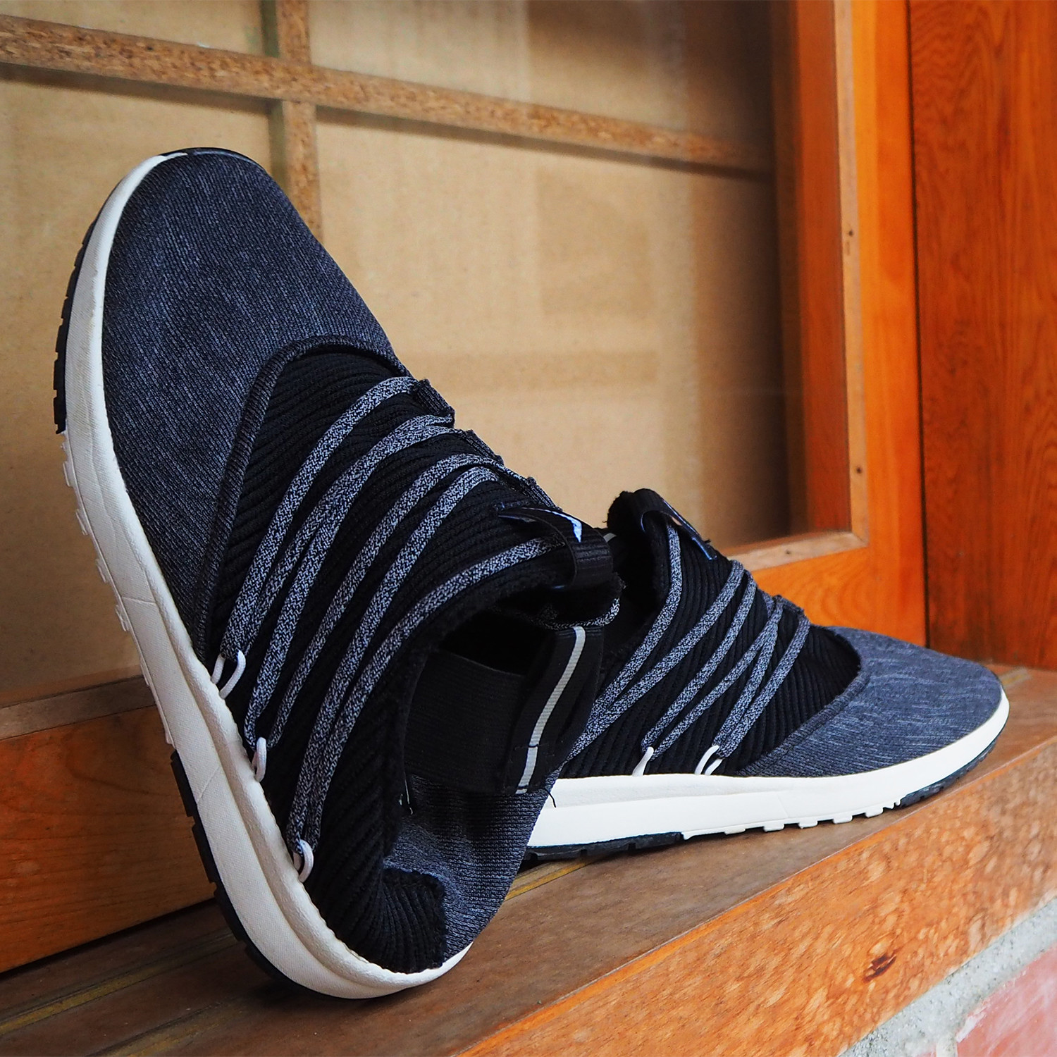 The secret is both a collapsible heel and an integrated back strap. Fold the heel down of the fashion sneaker, and you've got a slipper. Fold out the back strap and it's a sandal. Fold the heel back out again with the strap and you've get a lightweight athletic sneaker with a perfect, secure fit. Best of all, they flatten for packing, taking up about 40% less space than regular shoes.