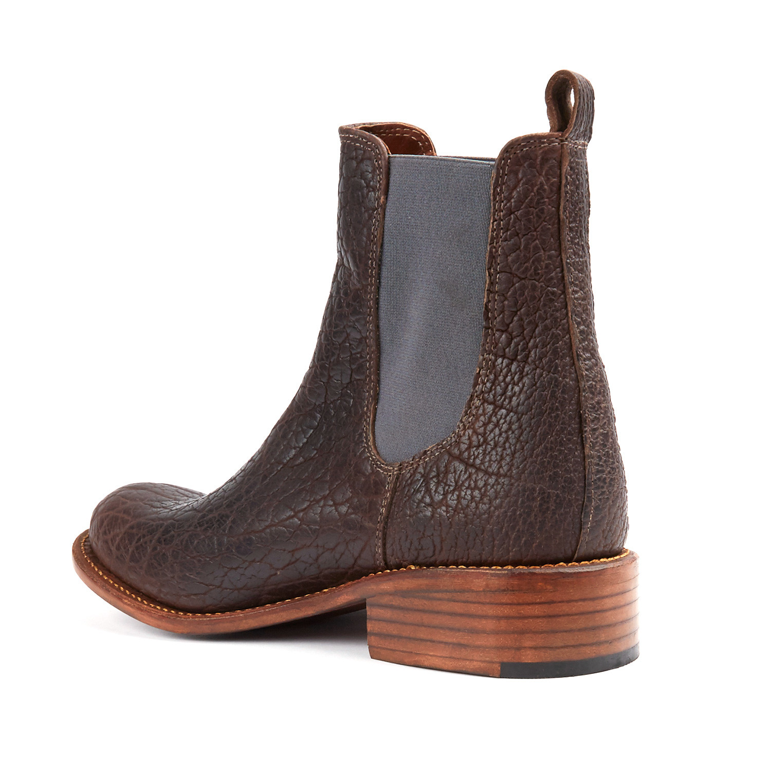 The Chelsea Bison is a Chelsea boot made in deeply textured Bison leather. Handmade in the United States, this piece is perfect for pairing with slim trousers and relaxed denim, and can take you anywhere you need to go
