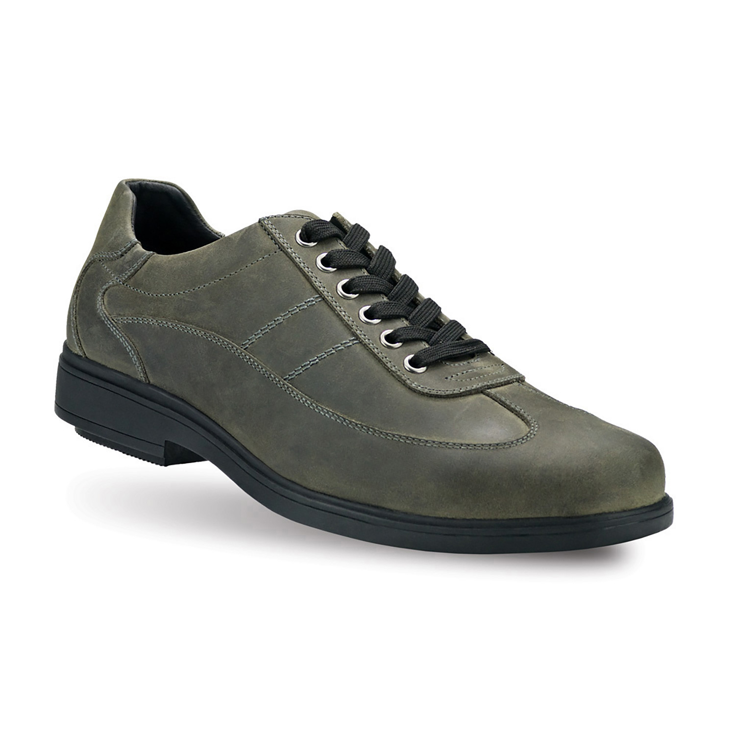 Introducing the Dugan. Casual footwear has never felt so good. Its Brazilian leather upper has a soft pebbled texture that is a pleasure to touch, with elegant lines and detailed stitching. The Dugan fits well with jeans or khakis, so you can match its style to your wardrobe. Even better, its VersoShock® Reverse Trampoline Sole absorbs shock, and propels you forward, to help you get through a long day in relaxed comfort.