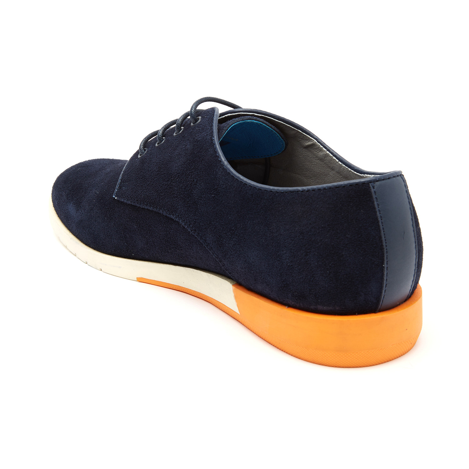 The Conway Suede Derby fuses a traditional English upper with an ultra-modern color-sliced sole. A suede upper and bright pops of color make it an easy piece to dress up or down.