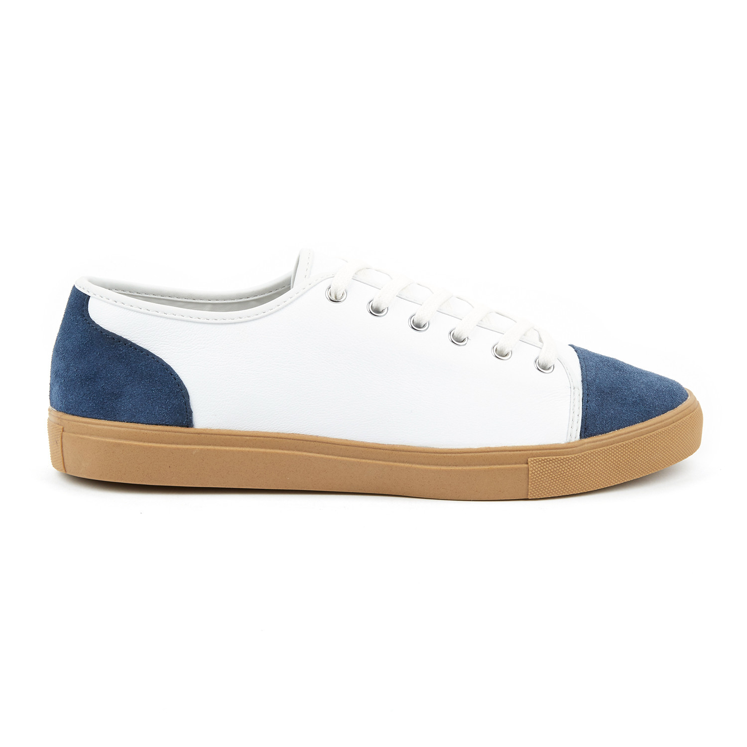 With a sleek white leather upper, a contrasting blue suede heel and toe cap, and a durable gum sole, these Denizen sneakers are a minimalist's dream. A balance of sporty shape with elegant color blocking, they look like the kind of expensive kicks that storied fashion houses have been making for years.