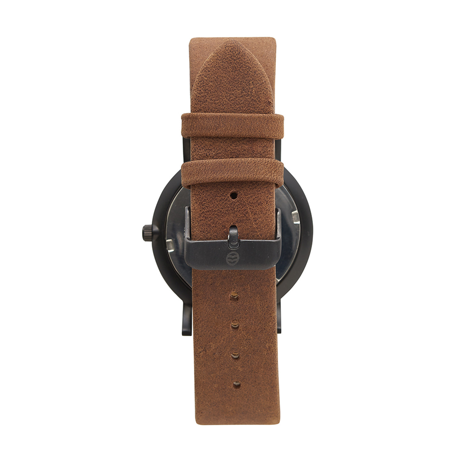 Barra is made with a stainless steel cases and crystal sapphire glass. The leather on the strap is of the finest quality, sourced from Italy and waterproofed to 100m, which means it is designed for swimming in the sea.