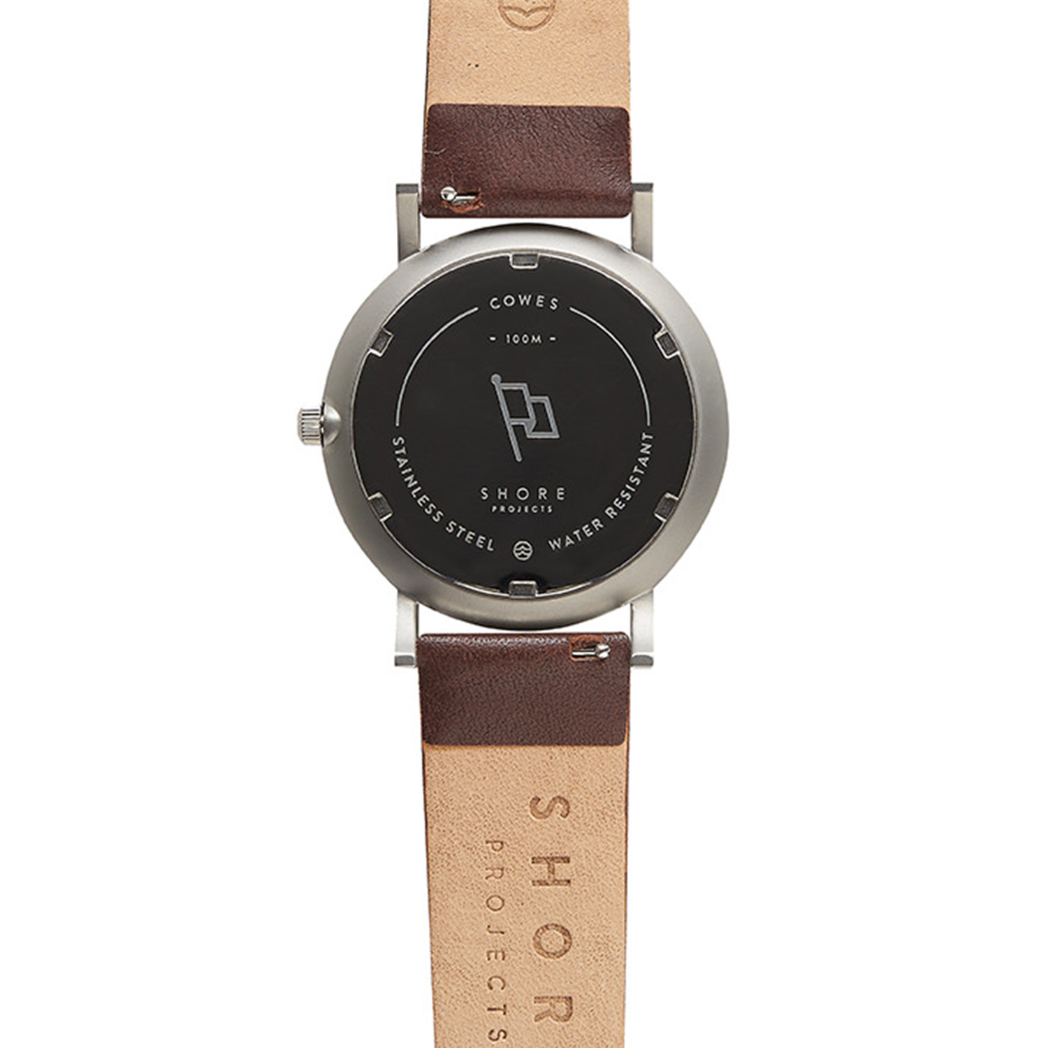 Cowes is made with a stainless steel cases and crystal sapphire glass. The leather on the strap is of the finest quality, sourced from Italy and waterproofed to 100m, which means it is designed for swimming in the sea.