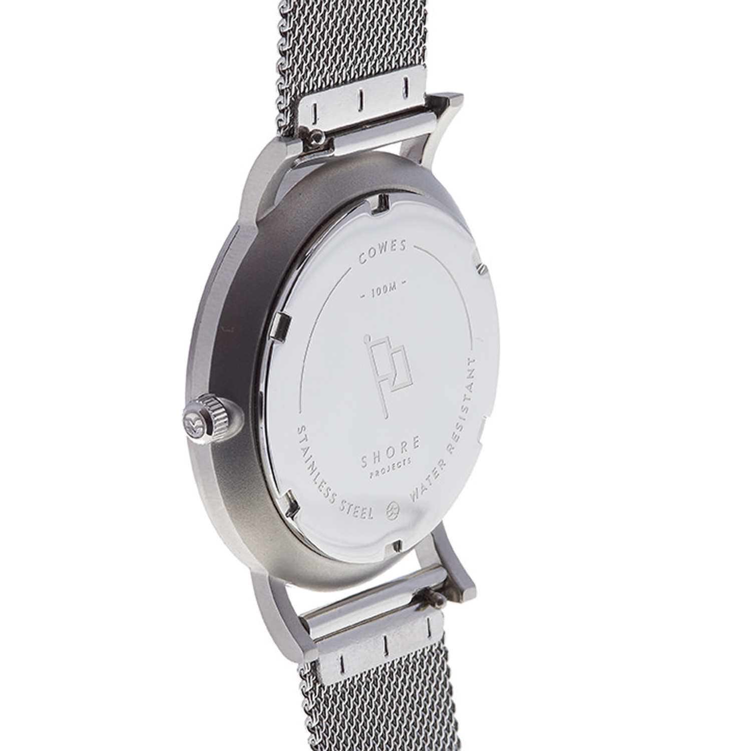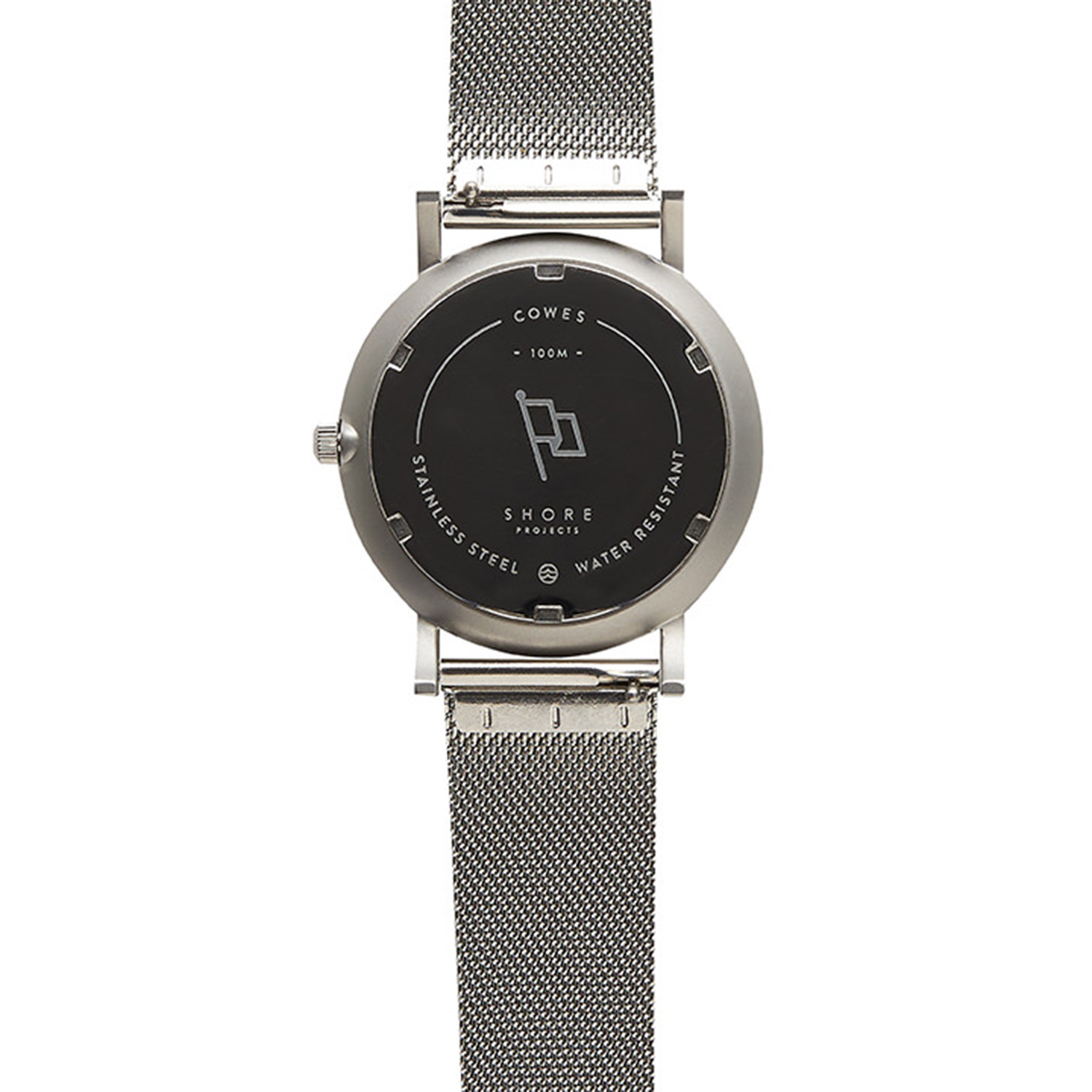Cowes is made with a stainless steel cases and crystal sapphire glass. The mesh strap is waterproofed to 100m, which means it is designed for swimming in the sea.