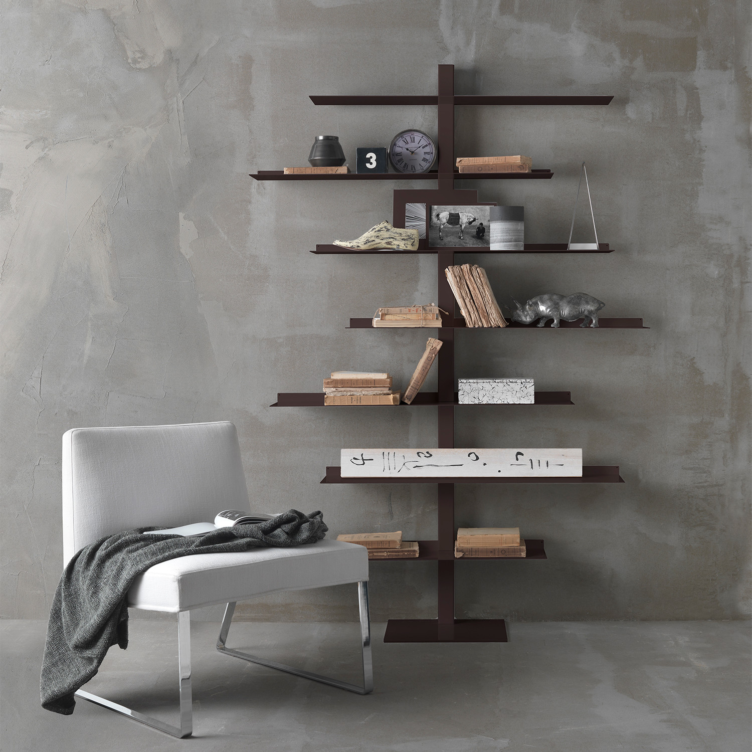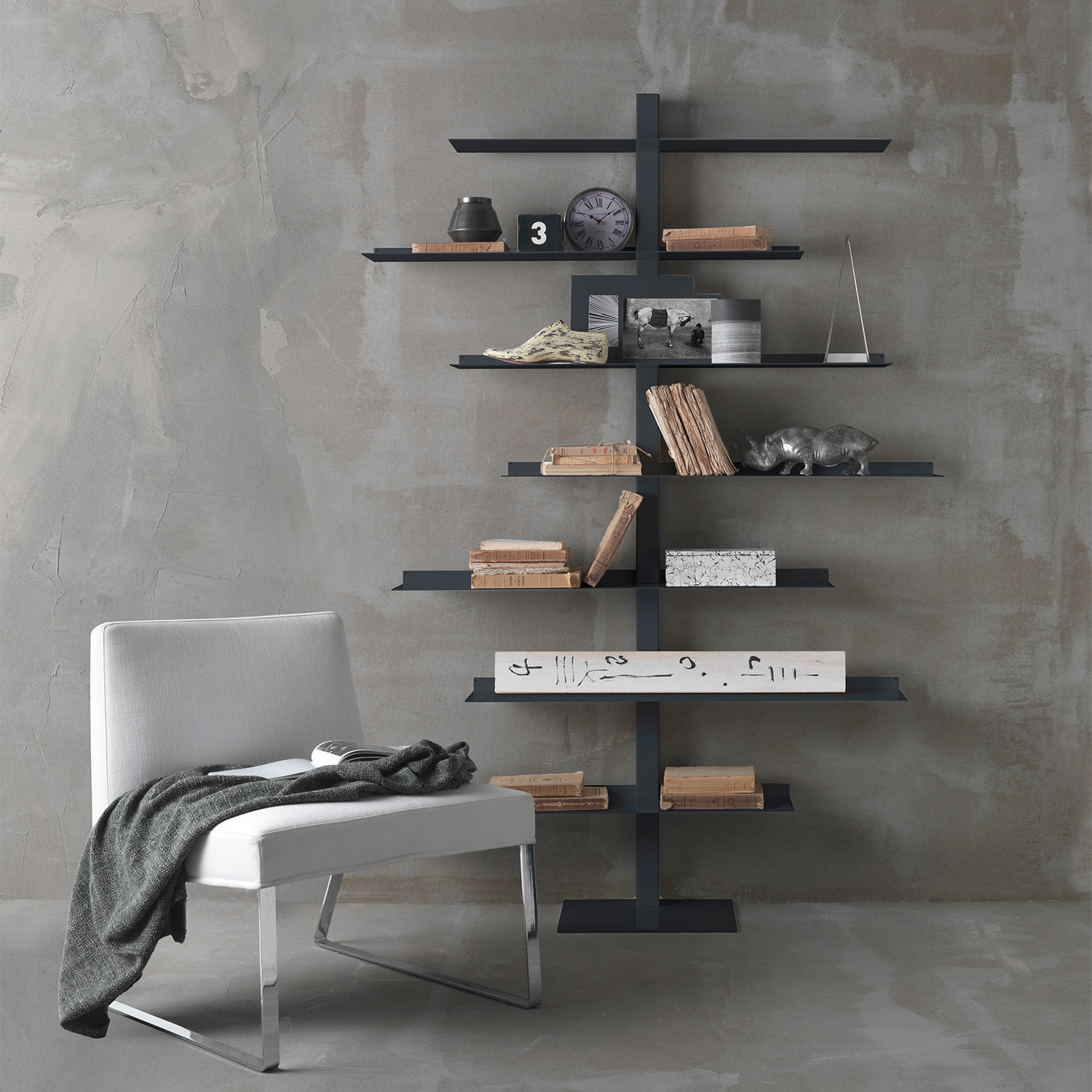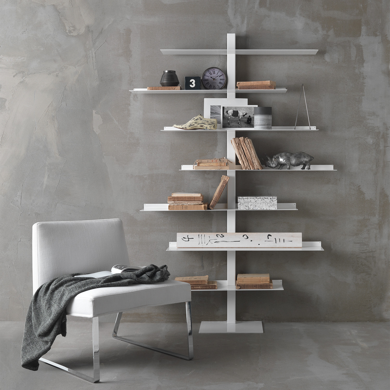 Crafted of 2.5mm thick painted steel sheet, each Apollo has 7 one-meter shelves, and can be left standing, or mounted on a wall.