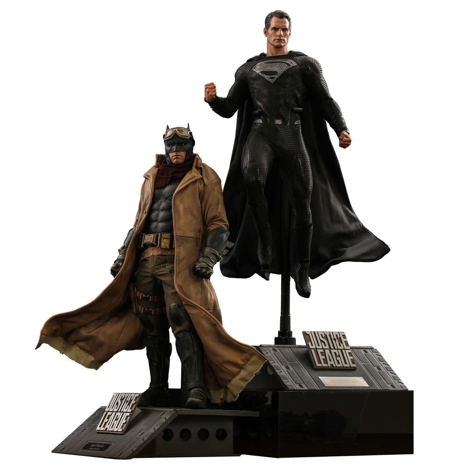 The exceptional Superman collectible figure is meticulously crafted based on movie likeness featuring a LED light-up headsculpt that accentuates Superman’s heat vision ability, an interchangeable head sculpt, muscular body with high poseability, a newly tailored black suit with Superman logo in metallic silver-gray, plus a themed figure stand.