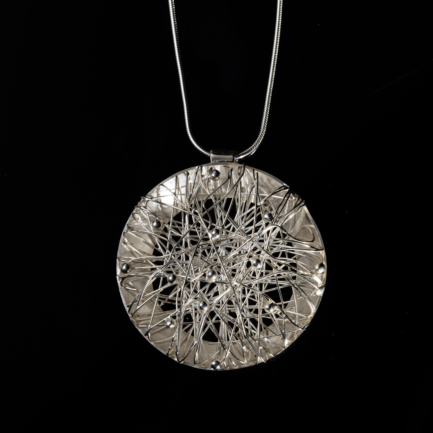 While traveling in Cairo, Mousumi fell in love with a criss cross design she came across in Khan el-Khalili market. Modern and futuristic in design, this Egyptian Zamalek Encased Criss Cross Circle Pendant reminds her of the modern section of Cairo known as Zamalek. This cool secret about this pendant, is that it can be worn both ways! On one side a thick silver border frames the pendant. On the back side, small silver balls accent the wires. This is truly an art piece!