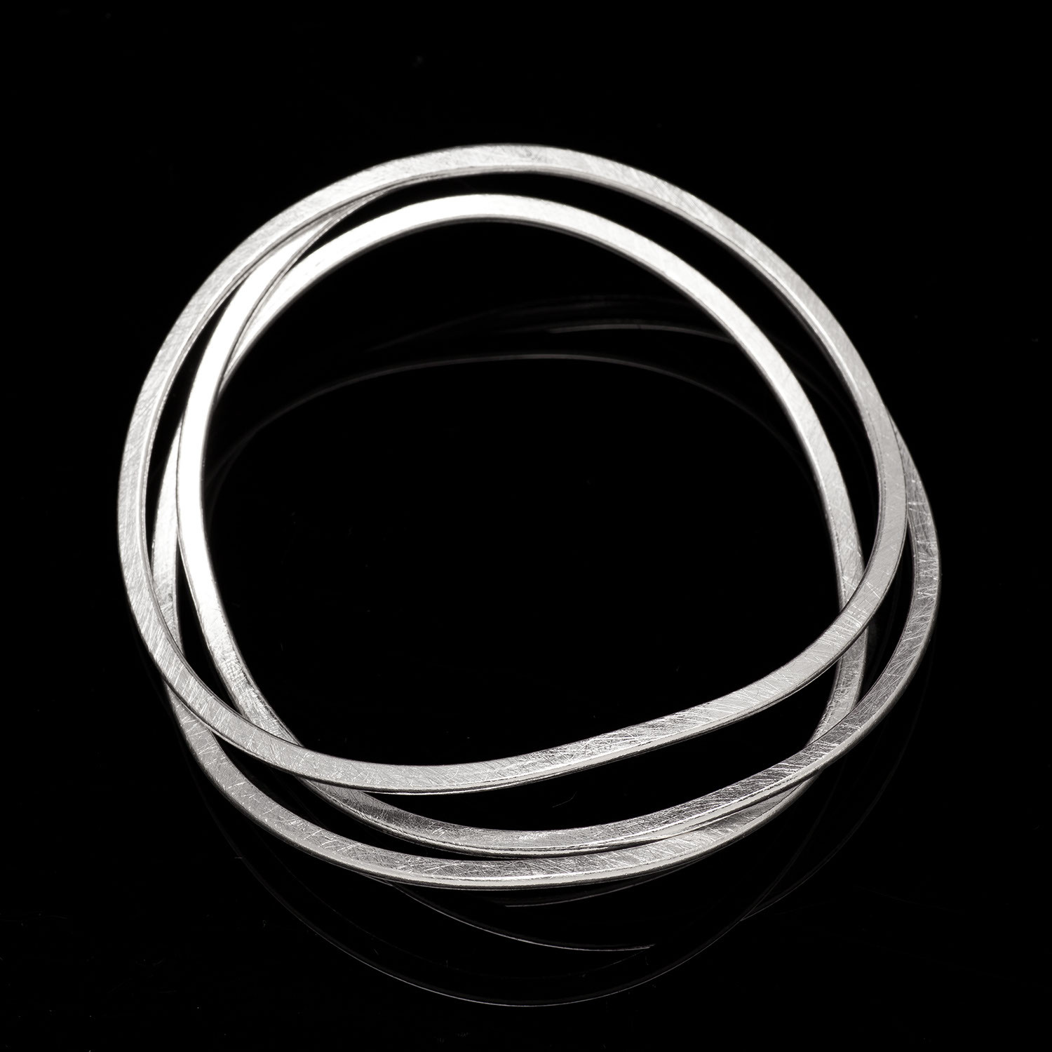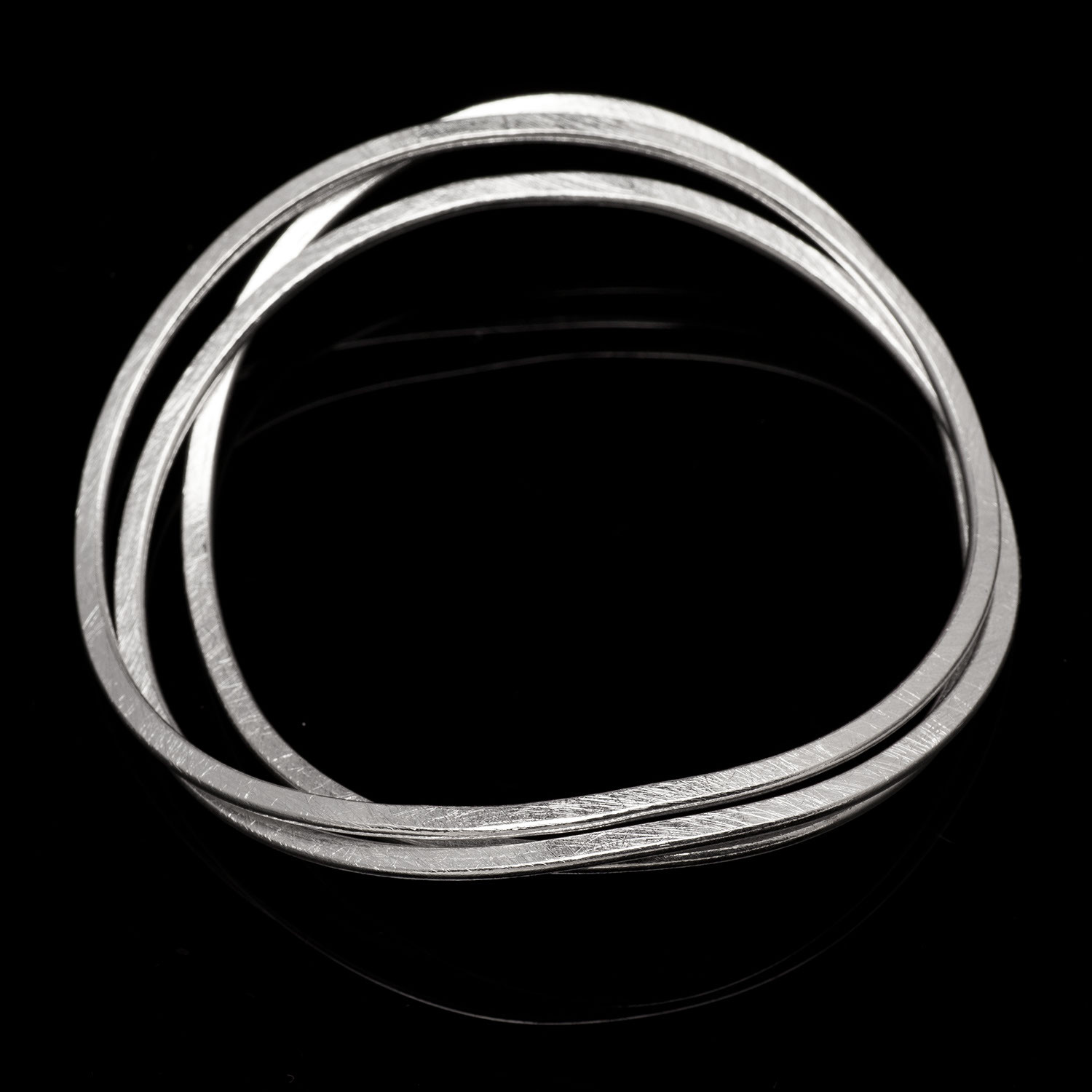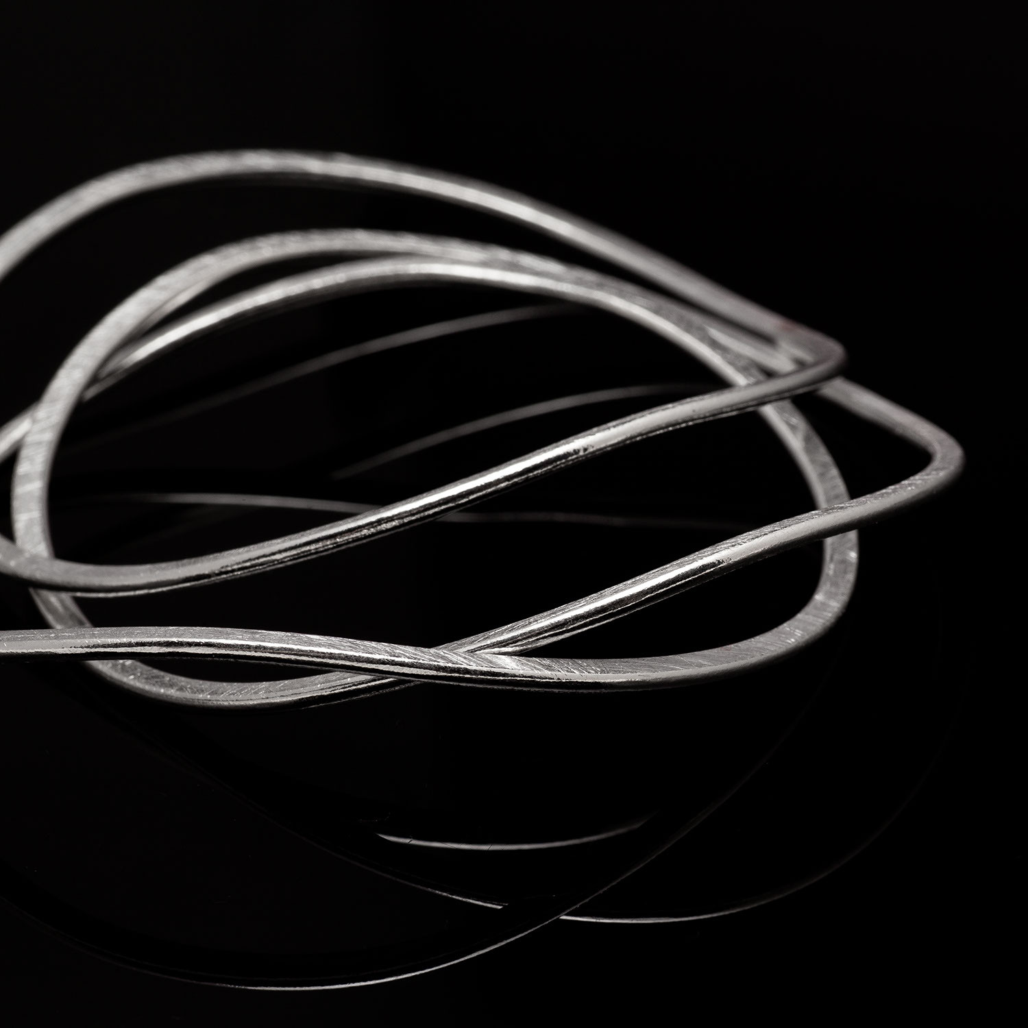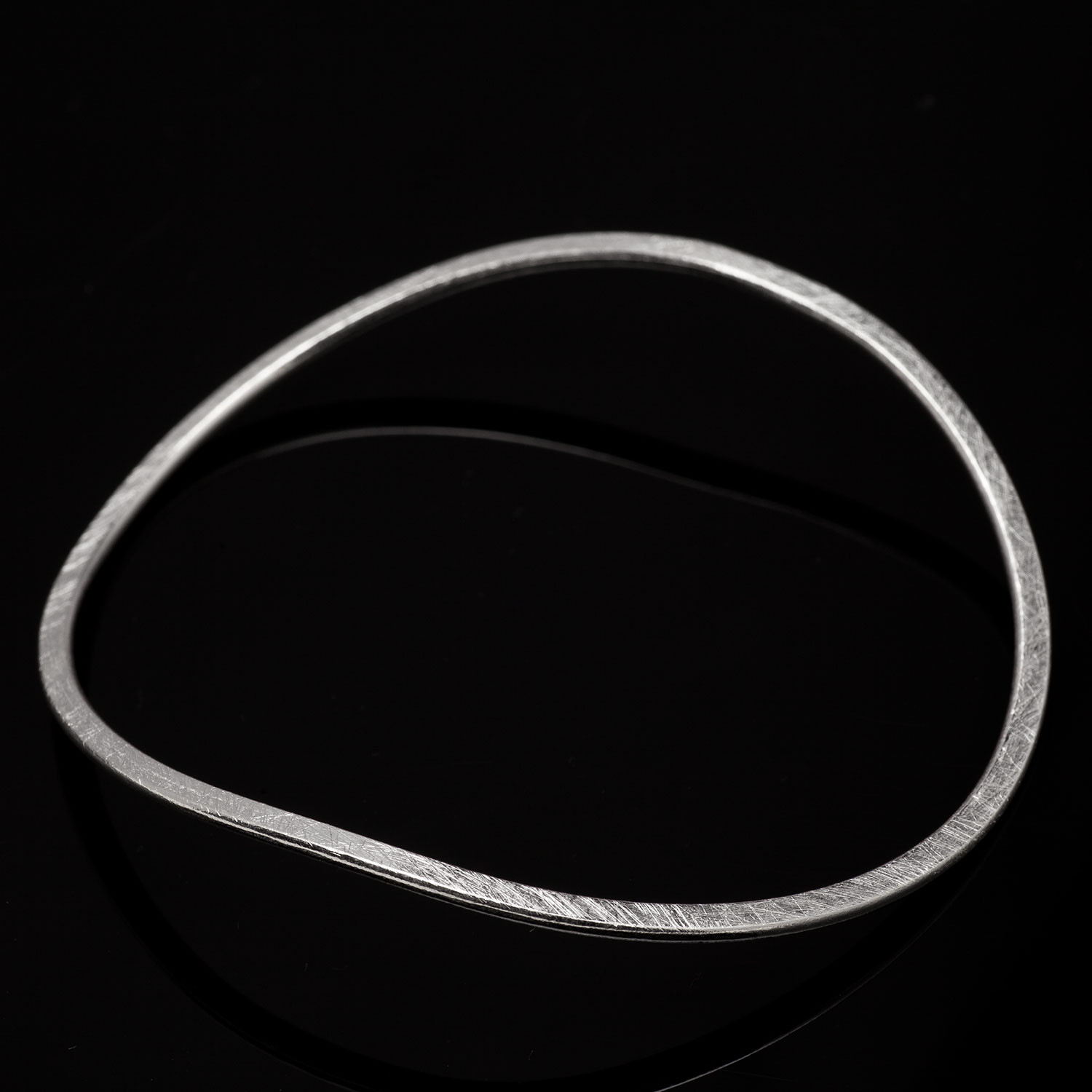 This single, hand-brushed textured bangle has a sculptured wave design, influenced by the architecture of Bilbao Spain. Pair two or three of these together or with other bangles in your collection.