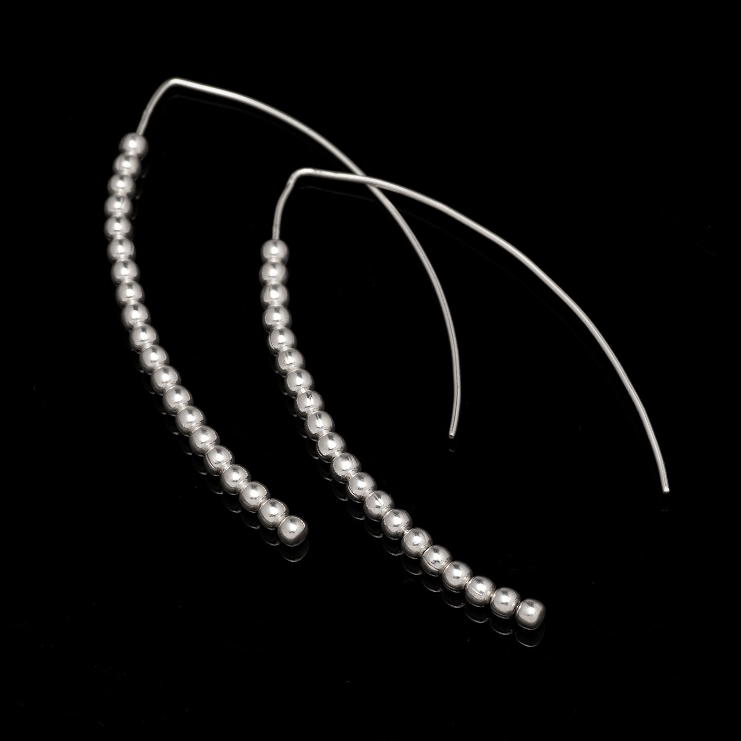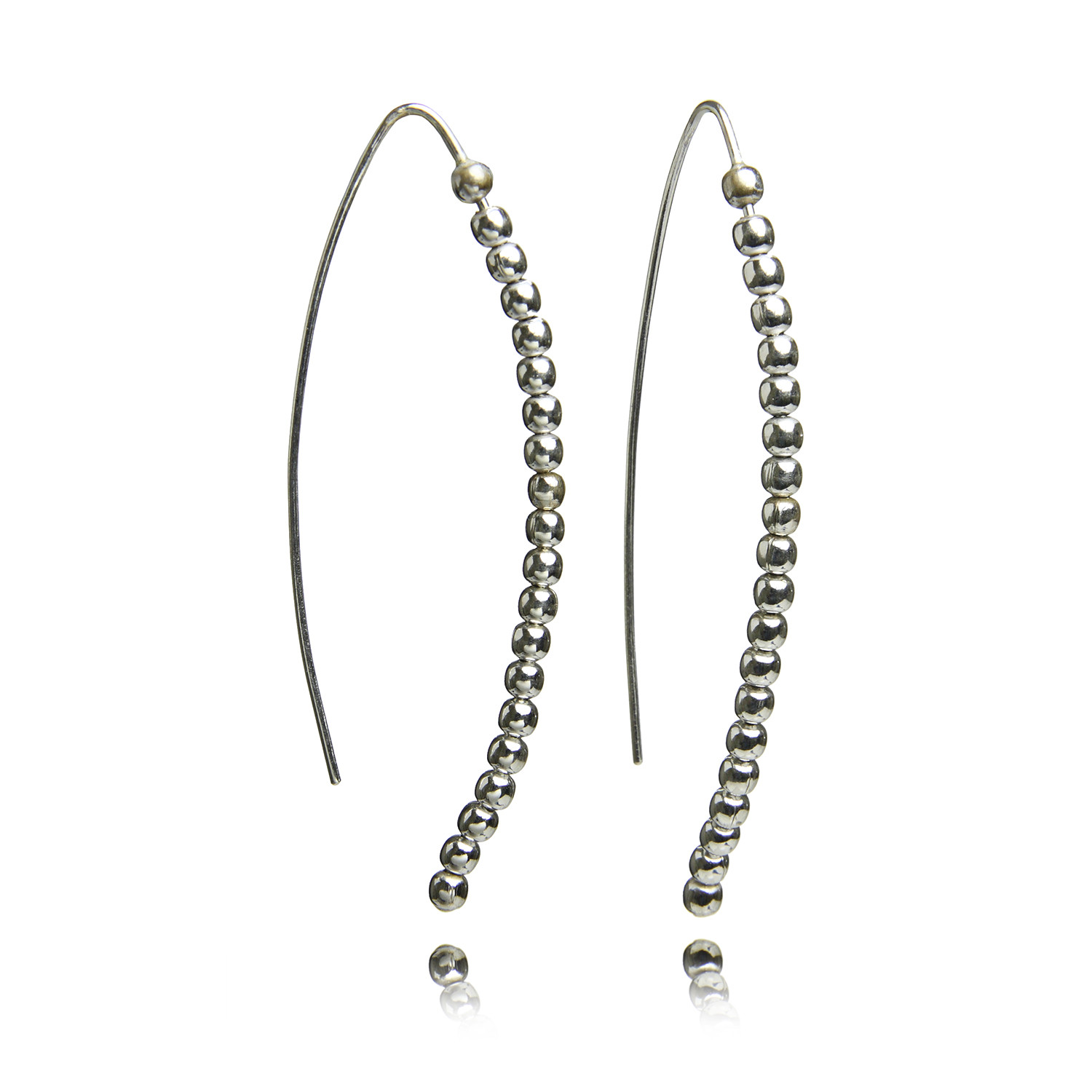 Inspired by Balinese design in Indonesia, these earrings are named for the Indonesian word for sword. They feature a curved design, and are finished with 20 small silver beads that exude both elegance and sophisticated.