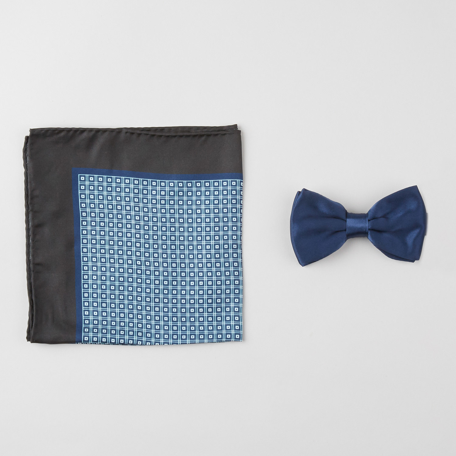 Geometric Silk Boxed Bow Tie + Pocket Square Set // Navy + White