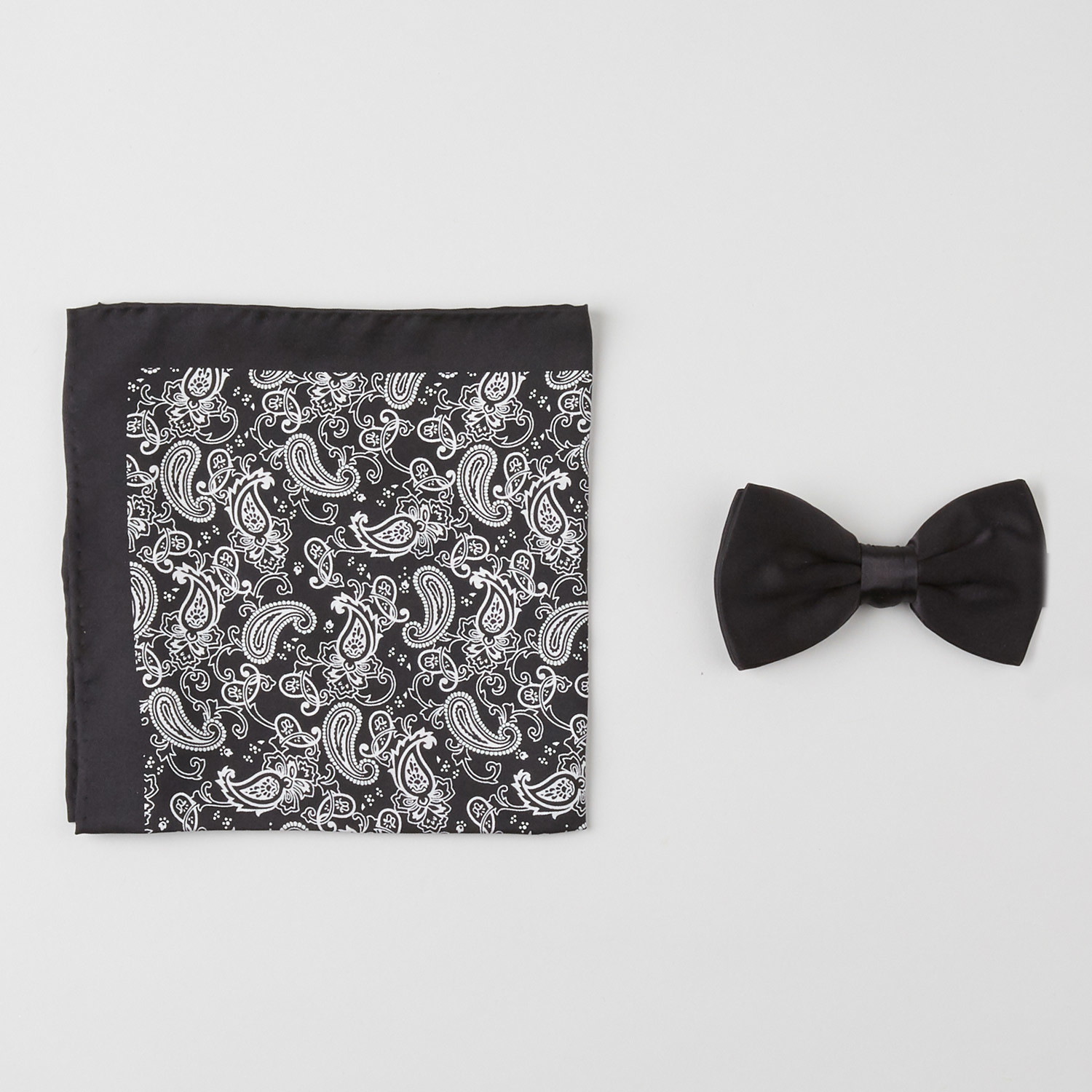 Paisley Silk Boxed Bow Tie + Pocket Square Set // Black + White