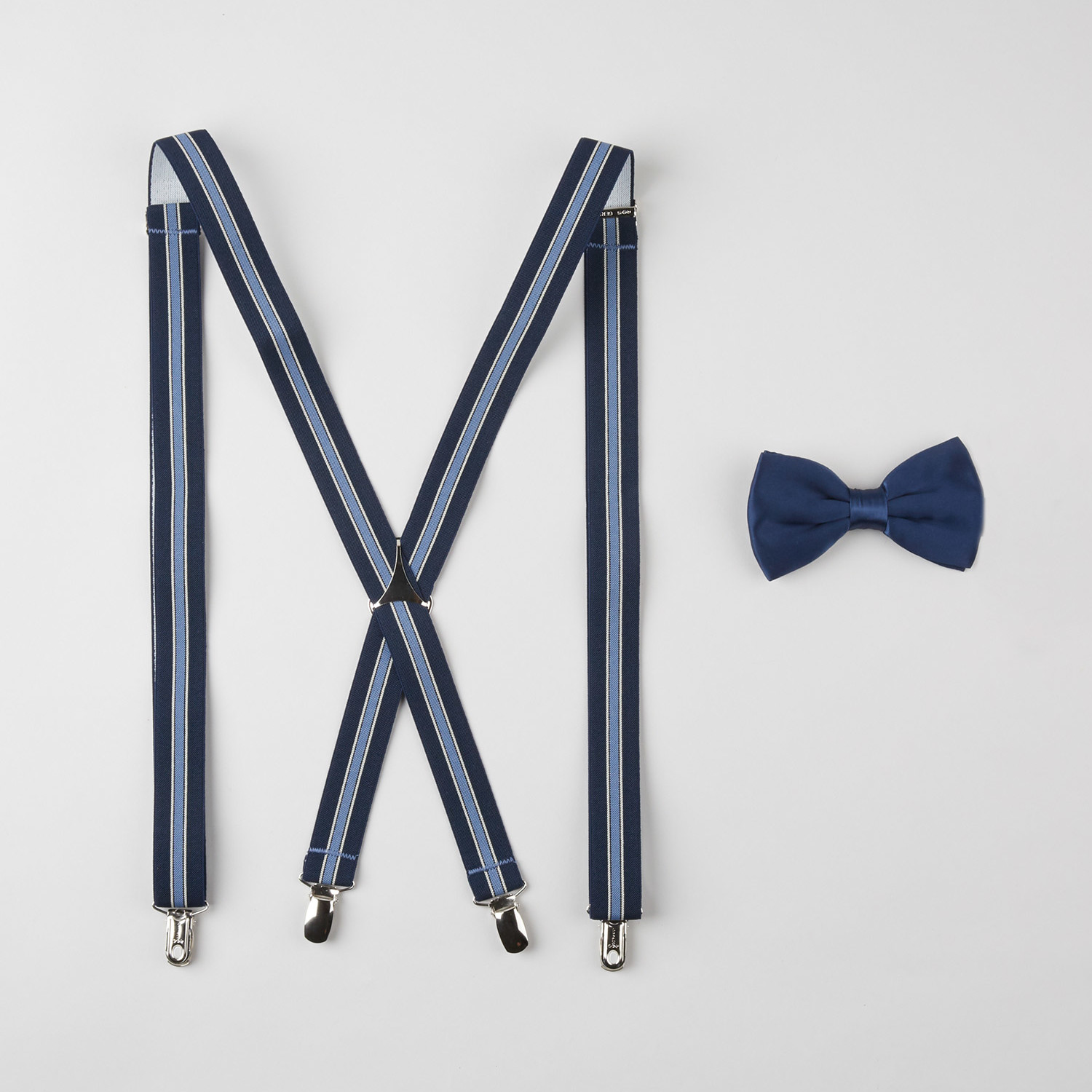 Striped Silk Bow Tie + Stretch Elastic Suspender Set // Navy + White
