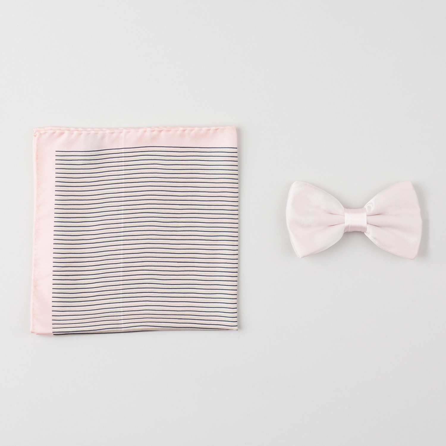 Striped Silk Boxed Bow Tie + Pocket Square Set // Pink + Black + White