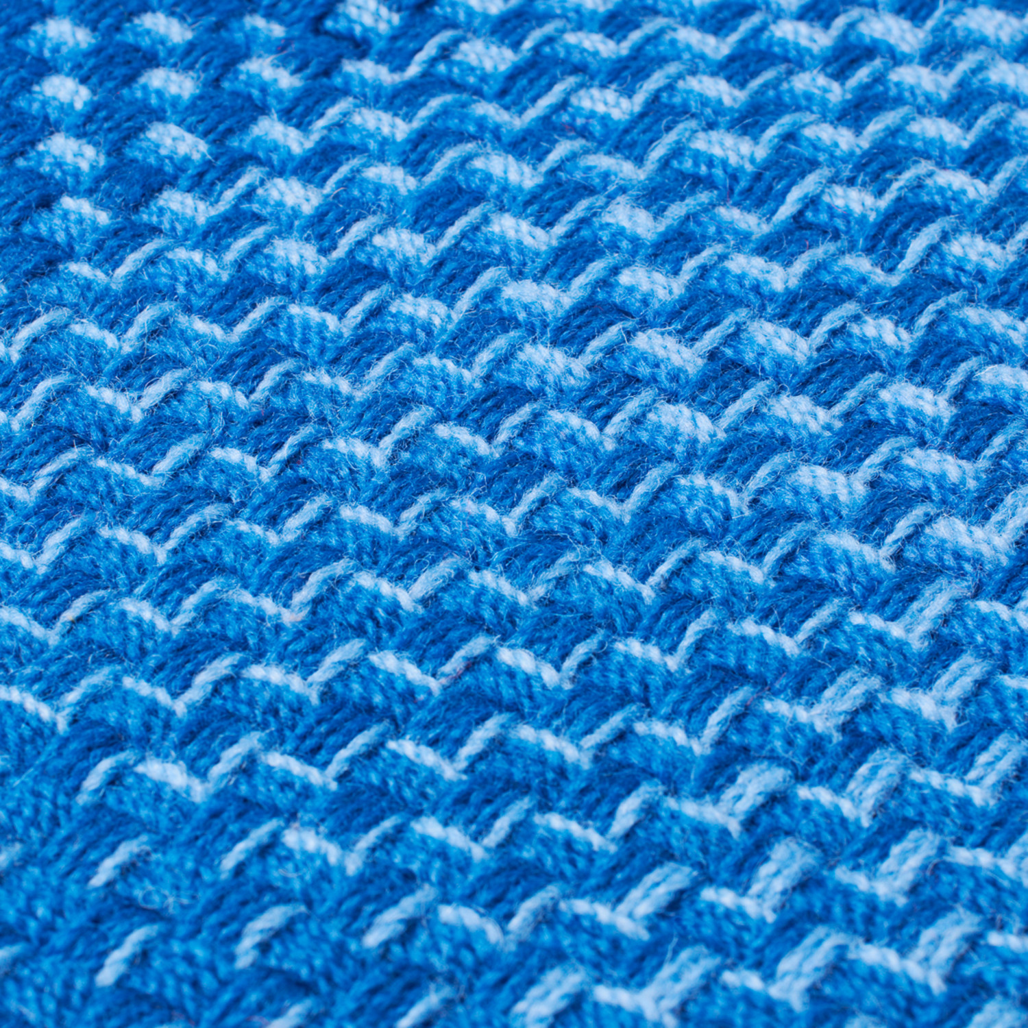 Four colors have been combined in thirteen different mixes to come together and form a beautiful blue gradient over the throw, the result of which is the abstract form of 169 boxes. It's a staggeringly complex textile from the mind of Simon Key Bertman, a true artist whose work will keep you warm.