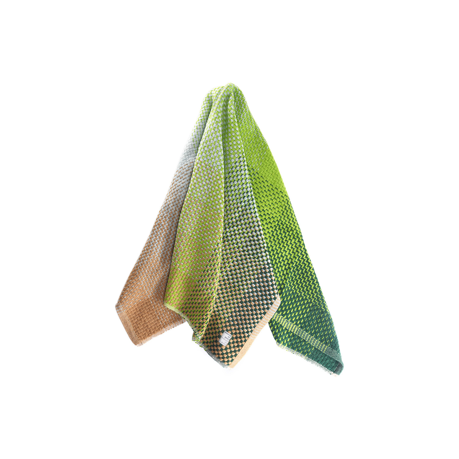 Four colors have been combined in thirteen different mixes to come together and form a beautiful green gradient over the throw, the result of which is the abstract form of 169 boxes. It's a staggeringly complex textile from the mind of Simon Key Bertman, a true artist whose work will keep you warm.