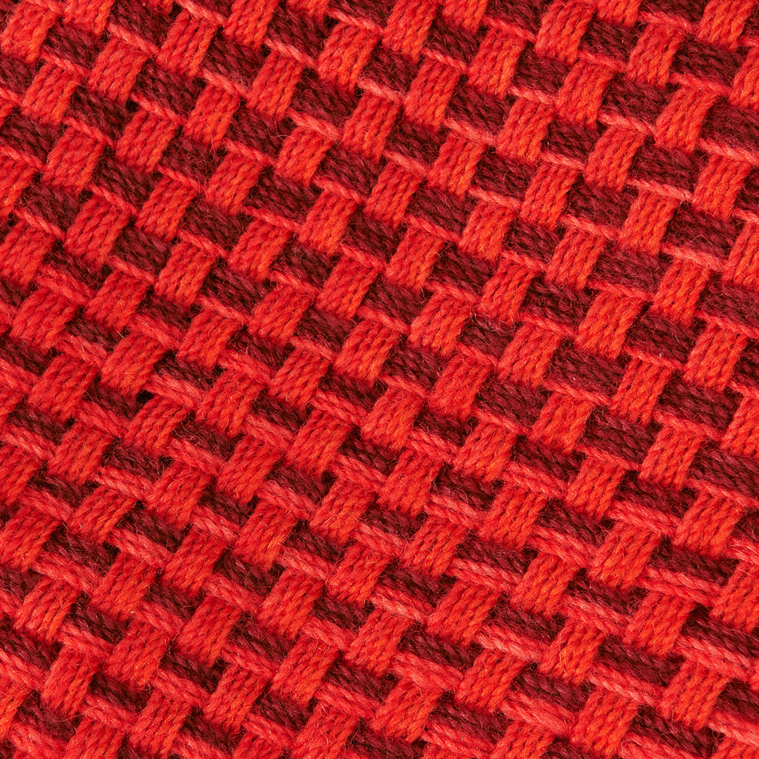 Four colors have been combined in thirteen different mixes to come together and form a beautiful red gradient over the throw, the result of which is the abstract form of 169 boxes. It's a staggeringly complex textile from the mind of Simon Key Bertman, a true artist whose work will keep you warm.
