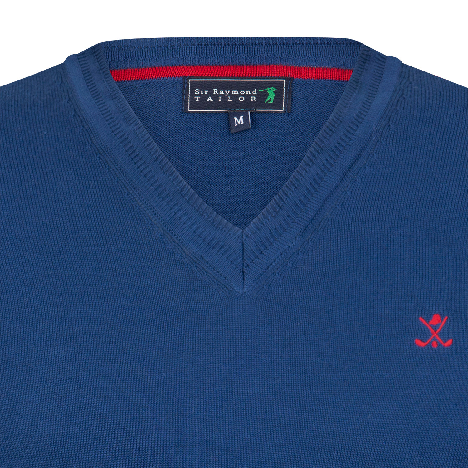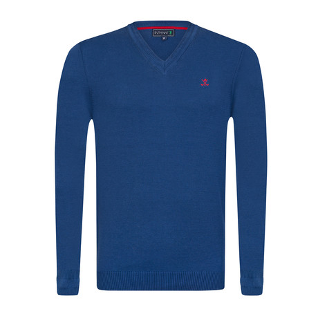 Vargo V-Neck Pullover + Arm Patch // Indigo + Red
