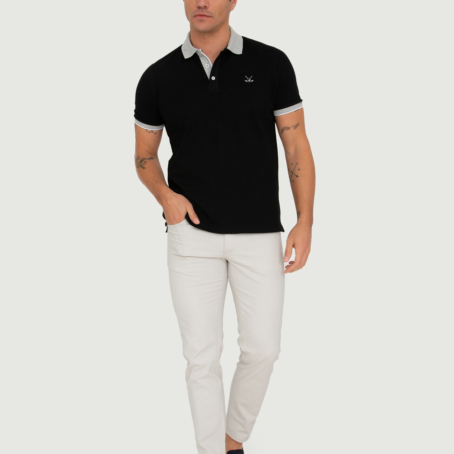 Brussels Short Sleeve Polo Shirt // Black + Gray Melange