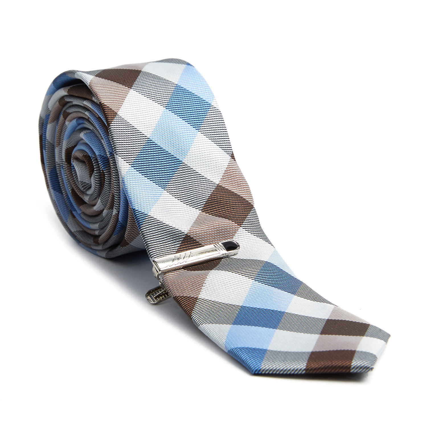 Checkered Skinny Tie + Tie Clip // Grey + Blue