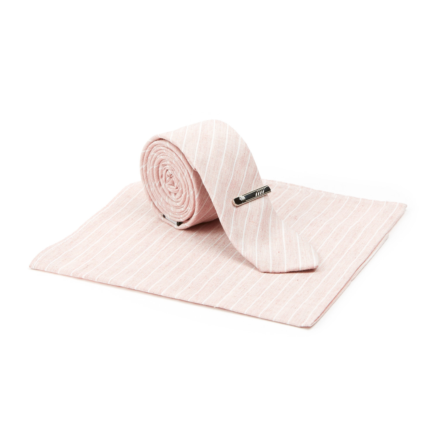 Microstripe Skinny Tie + Tie Clip + Pocket Square // Brushed Salmon