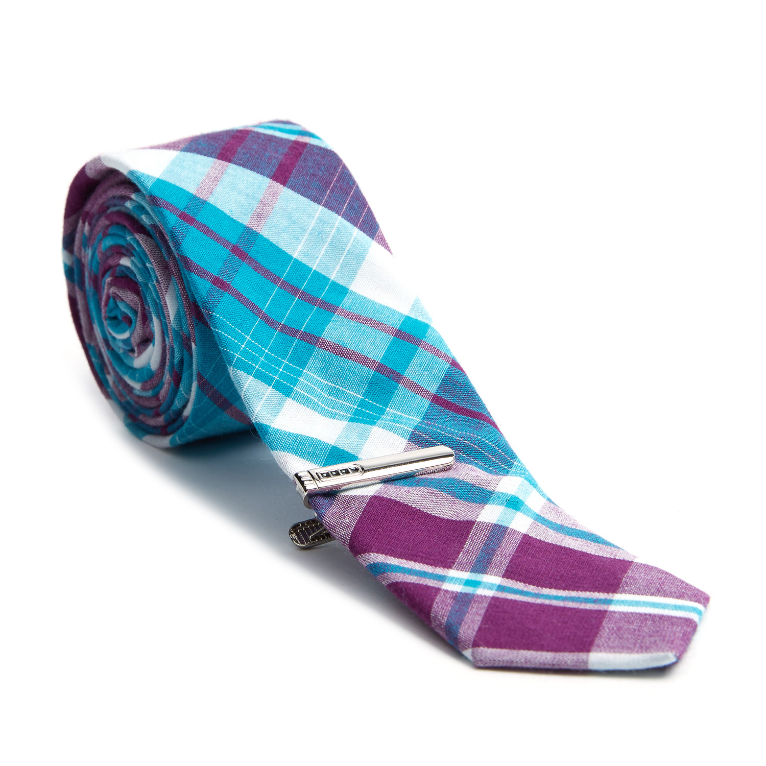 Plaid Skinny Tie + Tie Clip // Eggplant + Teal