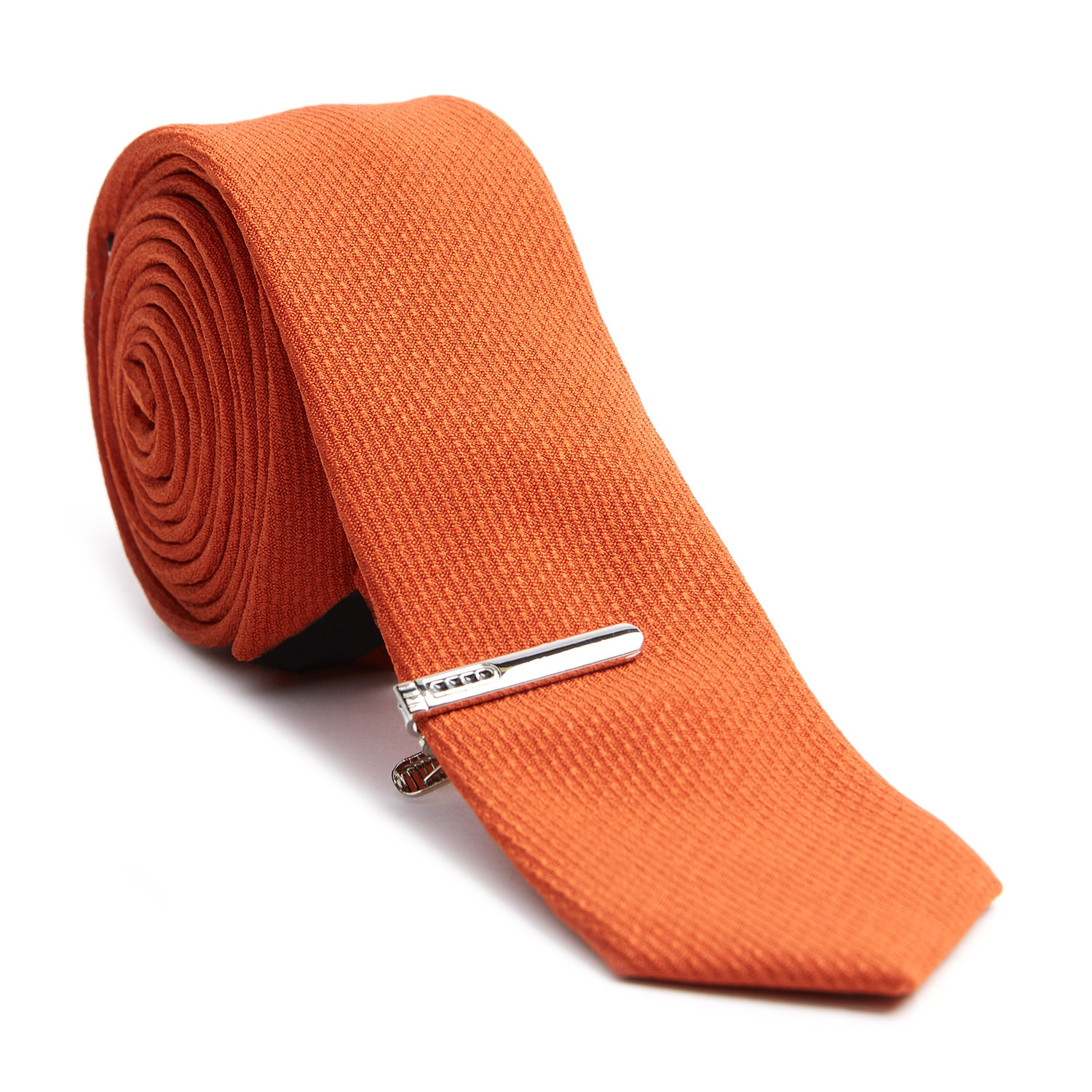 Solid Skinny Tie + Tie Clip // Pumpkin