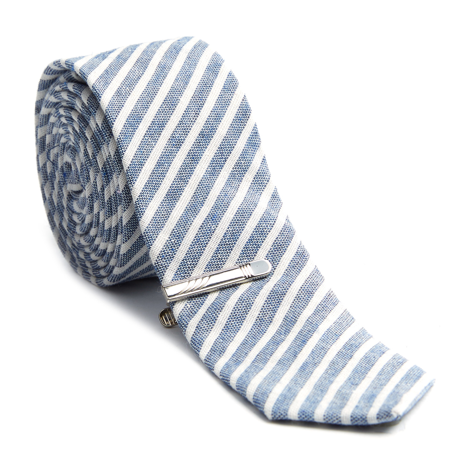 Striped Skinny Tie + Tie Clip // Brushed Navy
