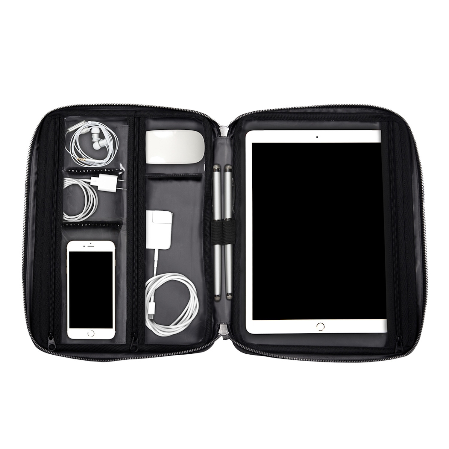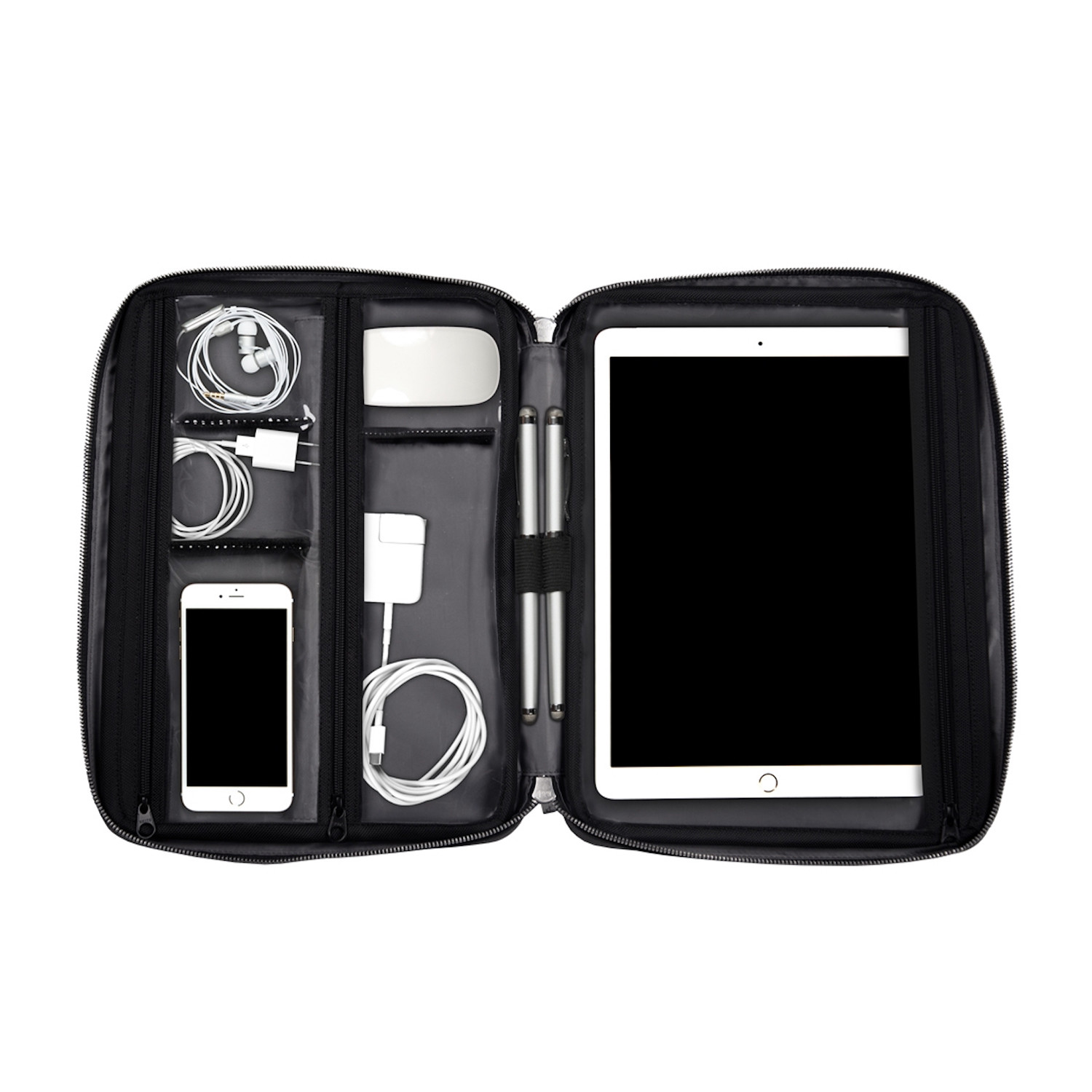 Keep your most important essentials organized and easily accessible with the Oxford Expert Carbon Stripe Tech Case. Crafted from durable nylon, the inside features six soft, clear interior pockets sized to fit smartphones, large tablets, cords, and accessories.