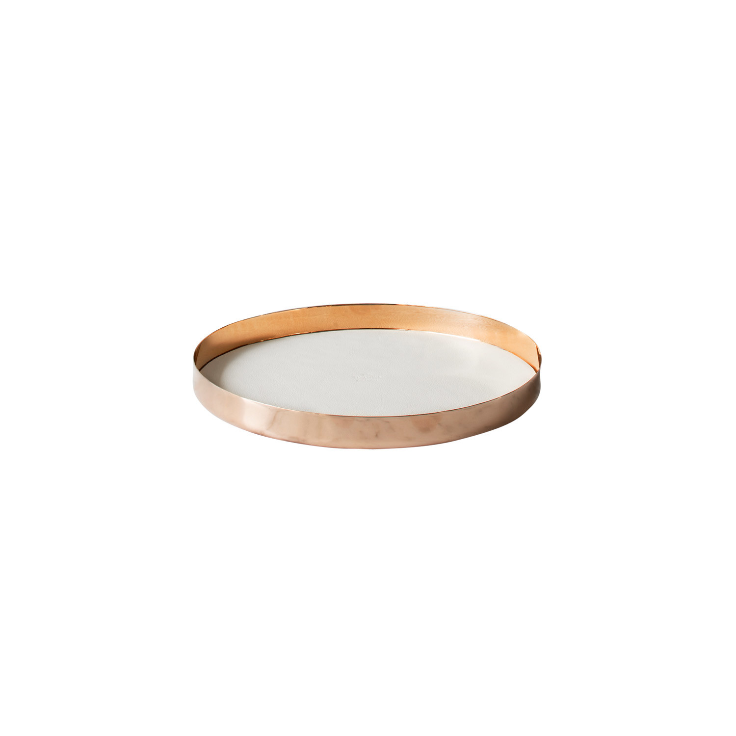 The Karui trays are designed by GamFratesi for Skultuna and produced through the classic Skultana technique of metal spinning. Each of these trays incorporates leather from the leading Swedish tannery Tärnsjö, famous for its high-quality leather. Stine Gam describes the design philosophy behind the trays, saying "[they're] called Karui / 軽い which in Japanese means 'soft'—in relation to the leather part—but also 'light'—the trays have a light aesthetic. Japanese gives other meanings as well, such 'easy/easily,' 'quick perhaps' which conveys the informal feeling we want with the trays."