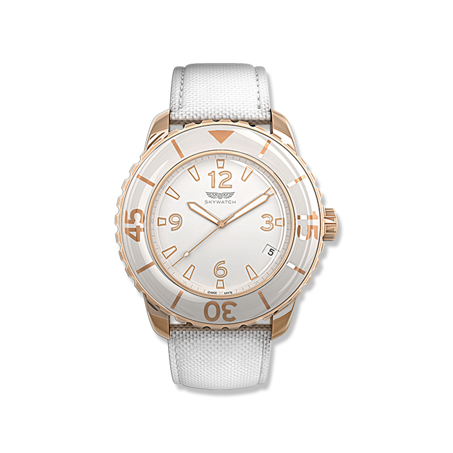 Premium, long lasting and beautiful. This 38mm rose gold and white design is the perfect feature for your modern ensamble. Made from polished stainless steel and scratch-resistant mineral crystal, this timeless timepiece is sure to turn heads.