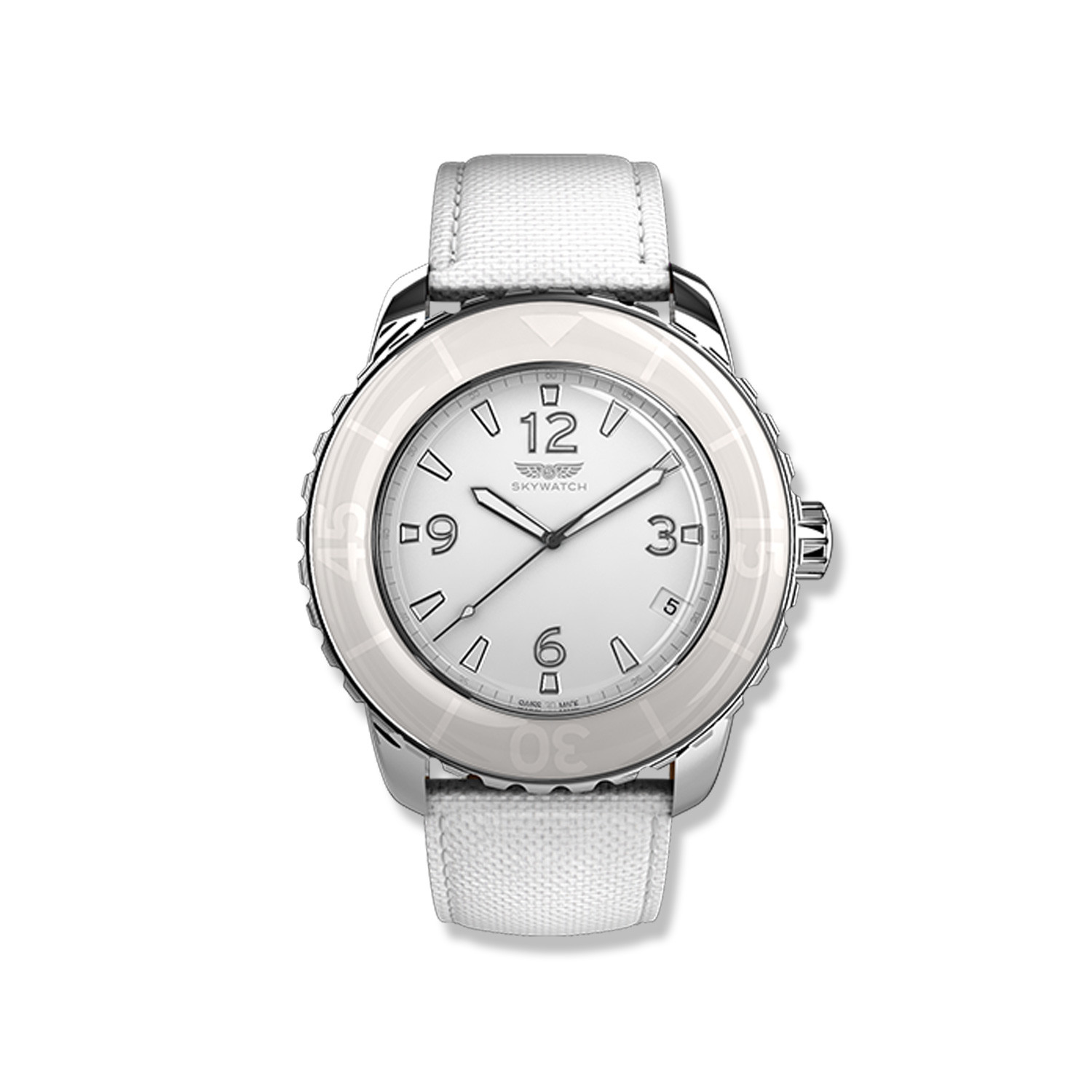 The 38mm bezel diameter on this white design brings a strong presence wherever you go. The 3-hand swiss-quartz rhonda movement combines classic watch features with a fun and funky design. The premium photo luminescent graphics are a distinct feature that differentiate this timepiece with its competitive counterparts. With 100M water-resistance capability, you can virtually wear this watch wherever the wind, or water, takes you.