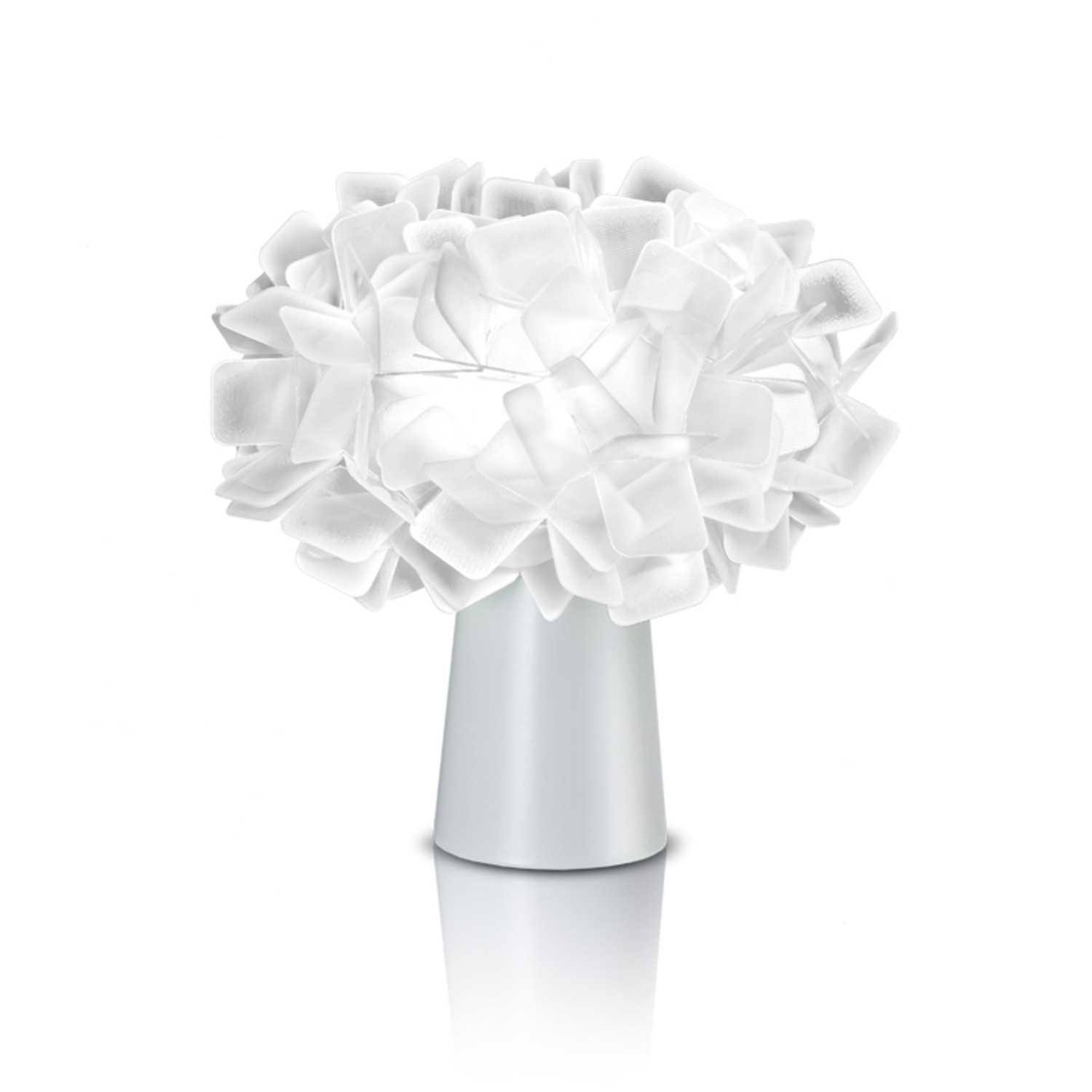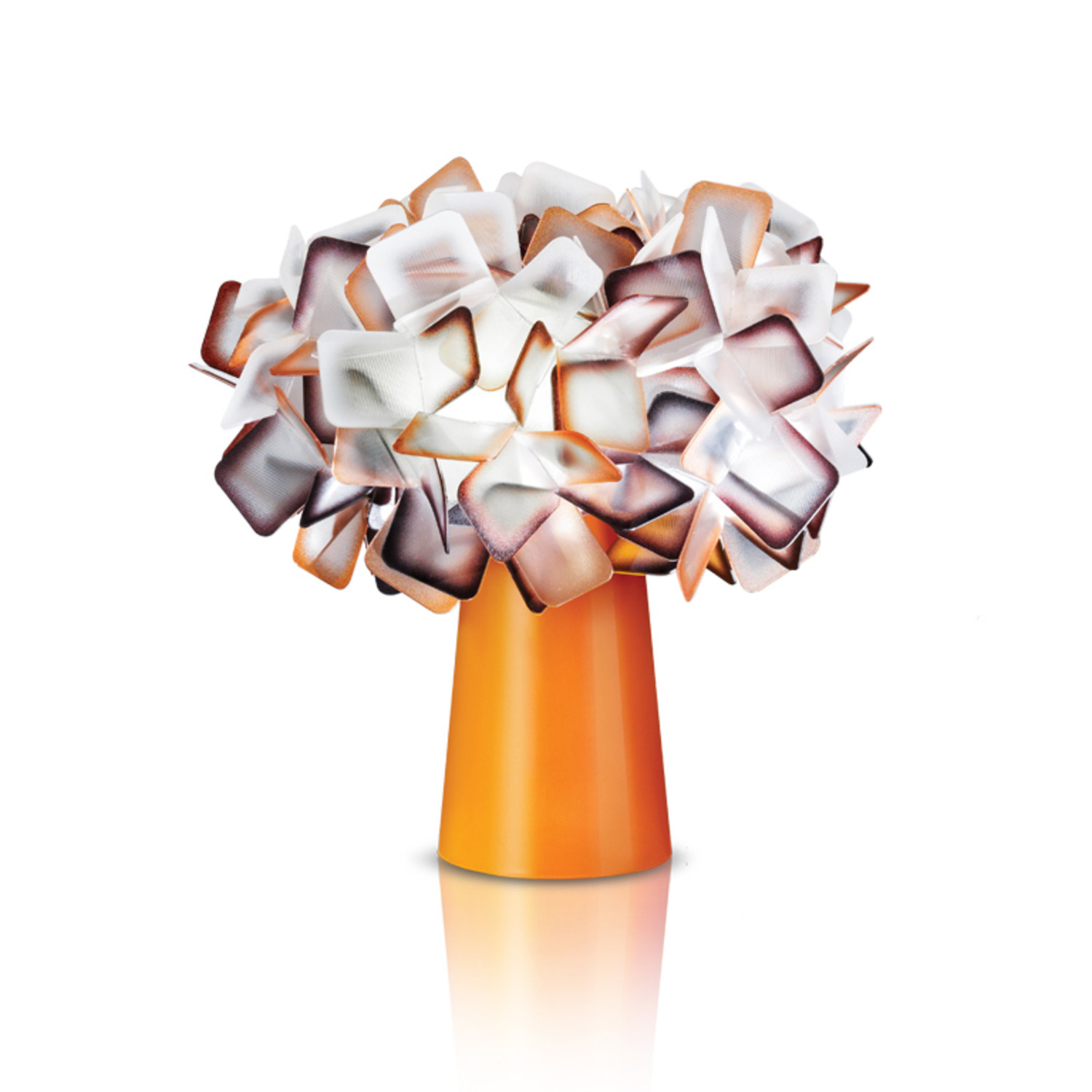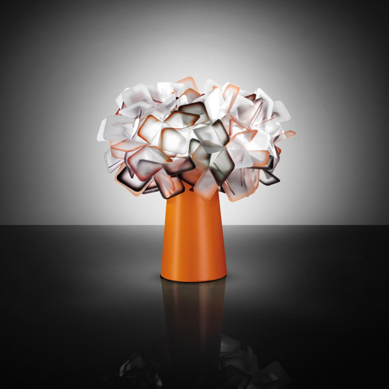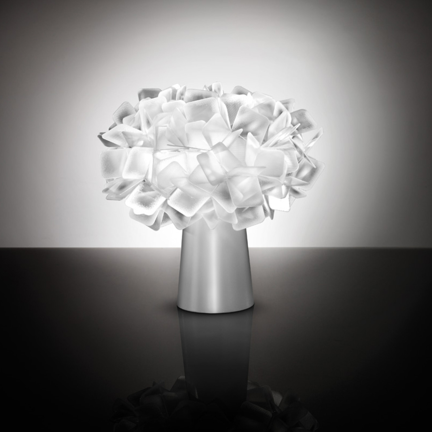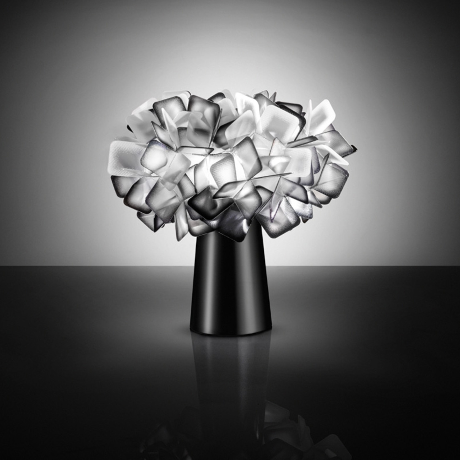 The Clizia series, which consists of colored interlocked squares in Opalflex® assembled manually, evokes the story of the mythological nymph who, repudiated by the Sun, becomes Elitropio. Artisans' hands shape the techno polymer like it was smooth silk, and this striking table lamp version will suit any room of the house, introducing the surprise of a soft geometric shape that seems created in a maison d’haute couture.
