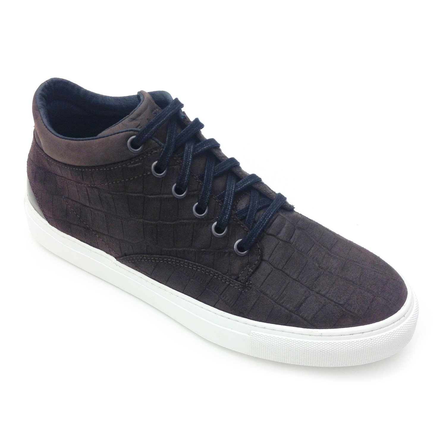 A classic design defines these crafted-in-Portugal mid-rise sneakers shaped from panels of supple crocodile-embossed leather.