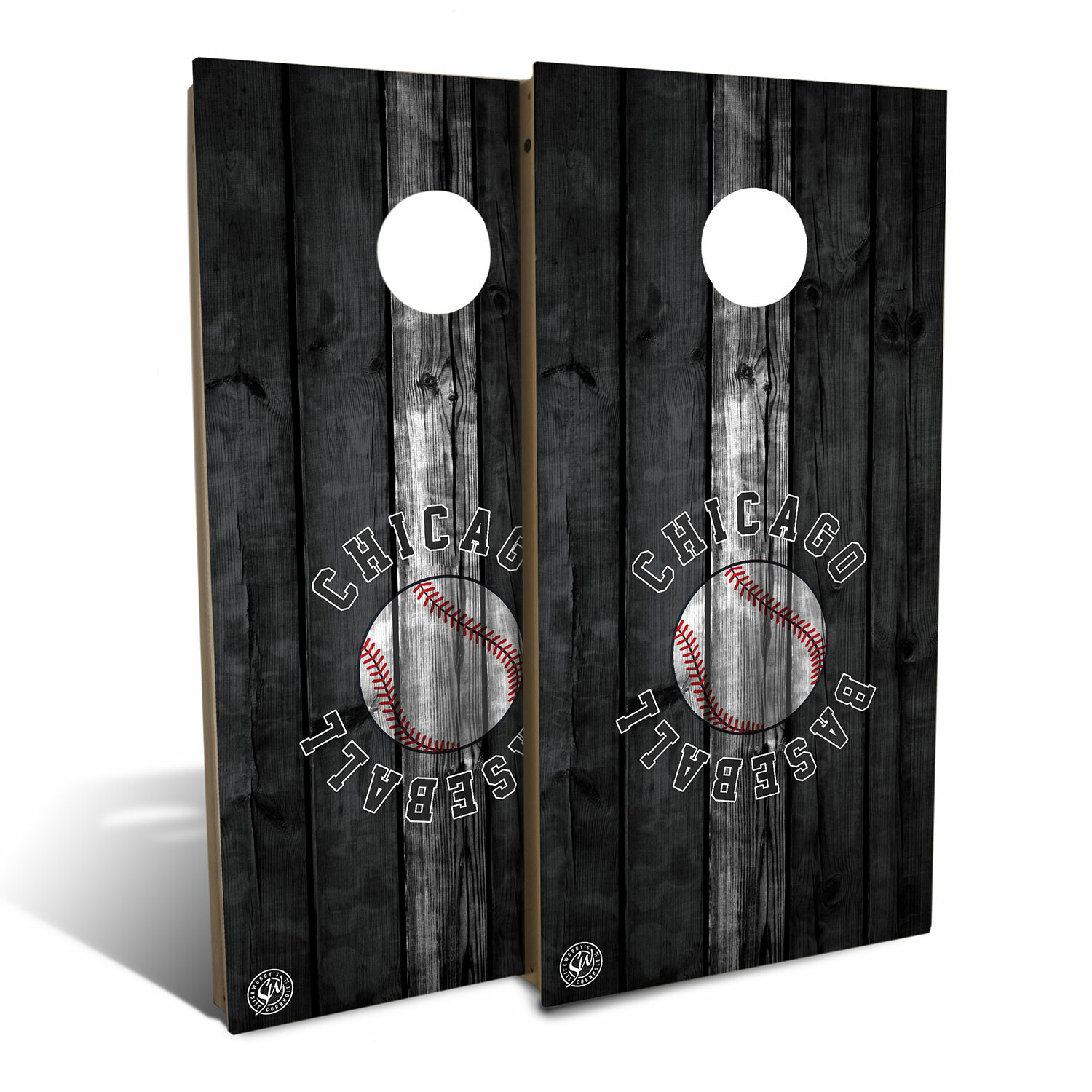 Chicago Black and White Baseball Backyard // Cornhole Board Set