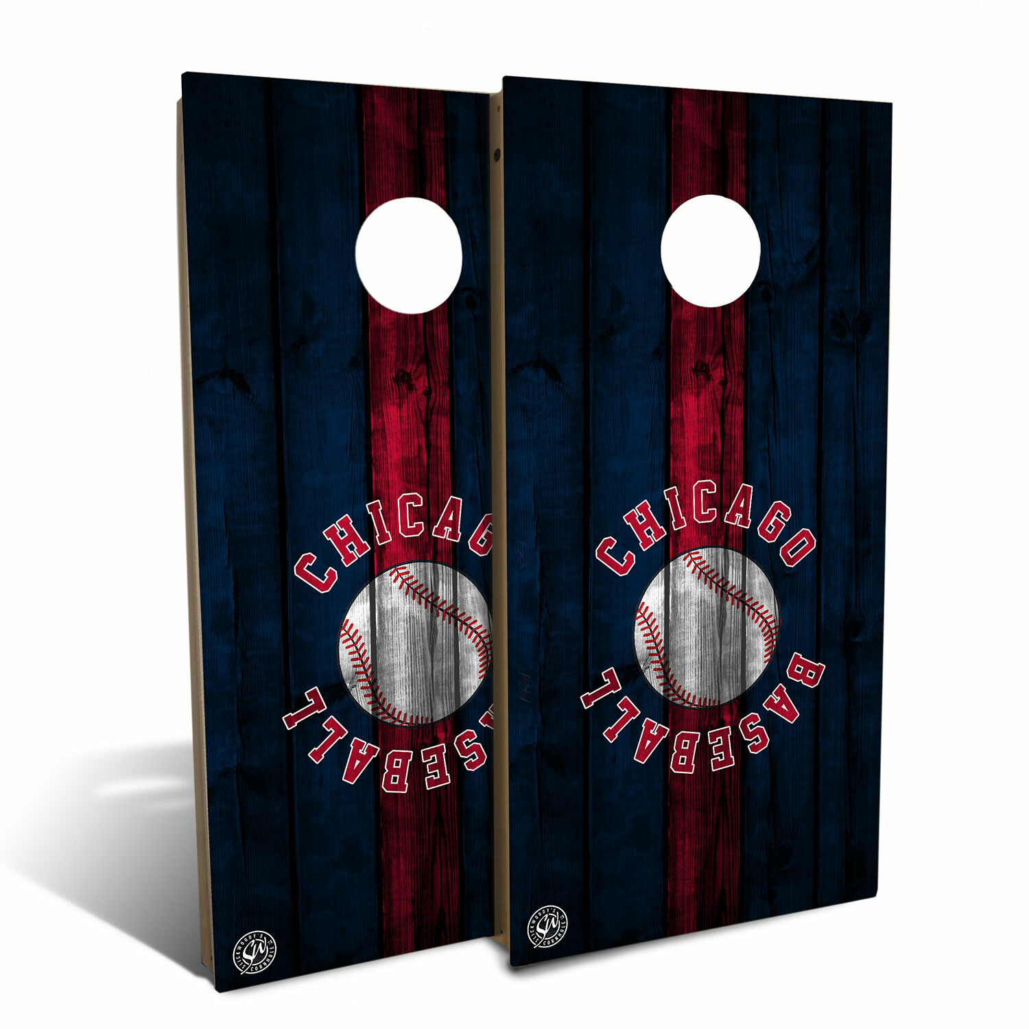 Chicago Red Blue Baseball Backyard // Cornhole Board Set
