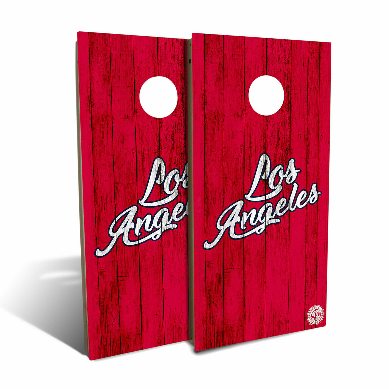 Los Angeles Red White Solid Wood Baseball Backyard // Cornhole Board Set