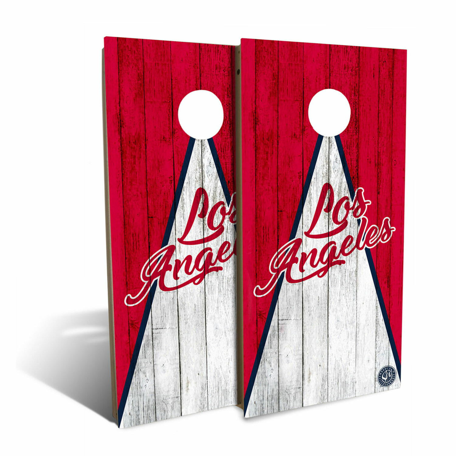 Los Angeles Red White Triangle Baseball Backyard // Cornhole Board Set