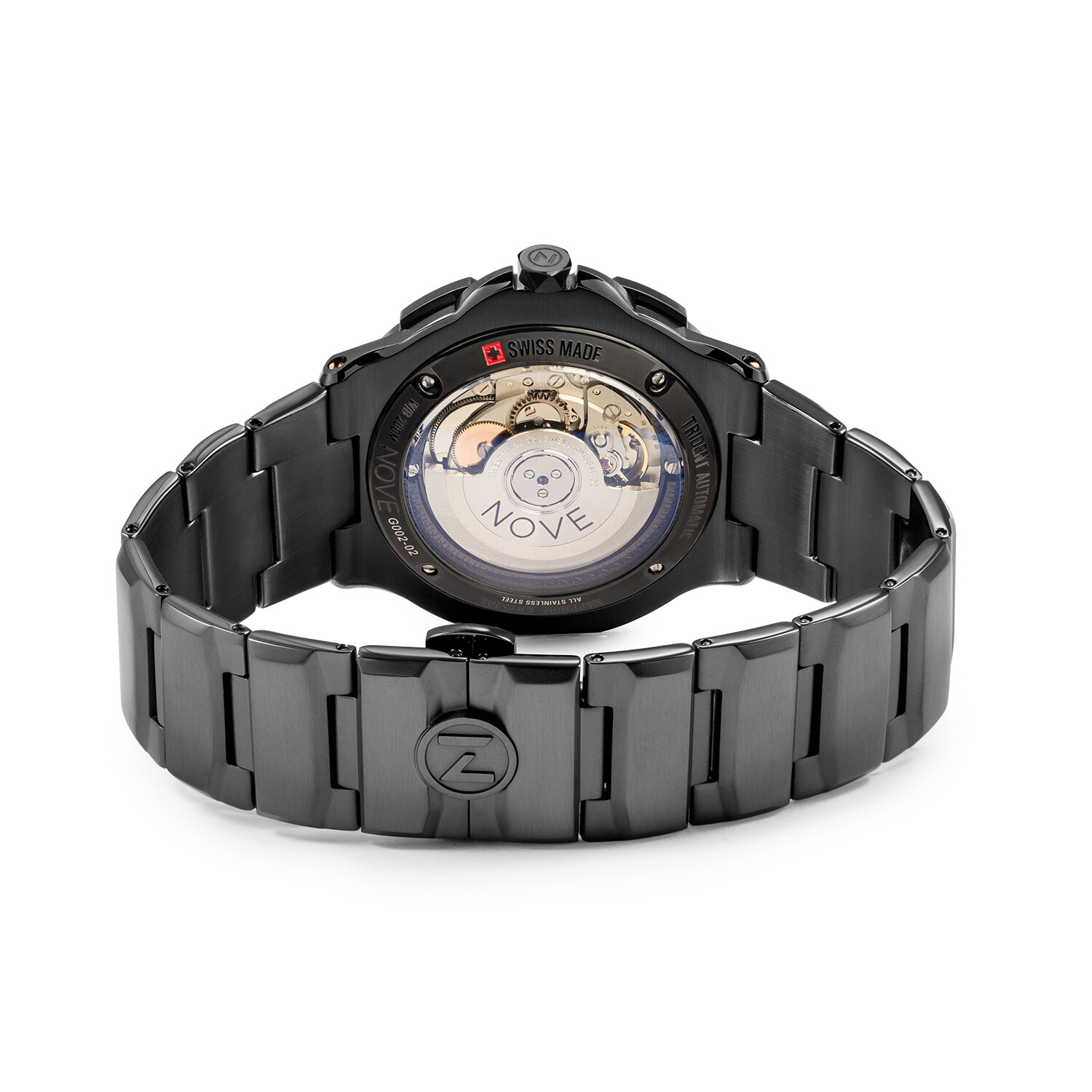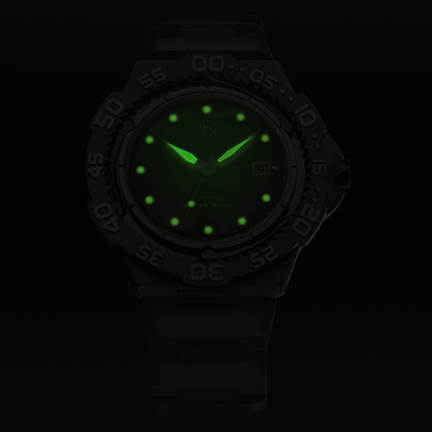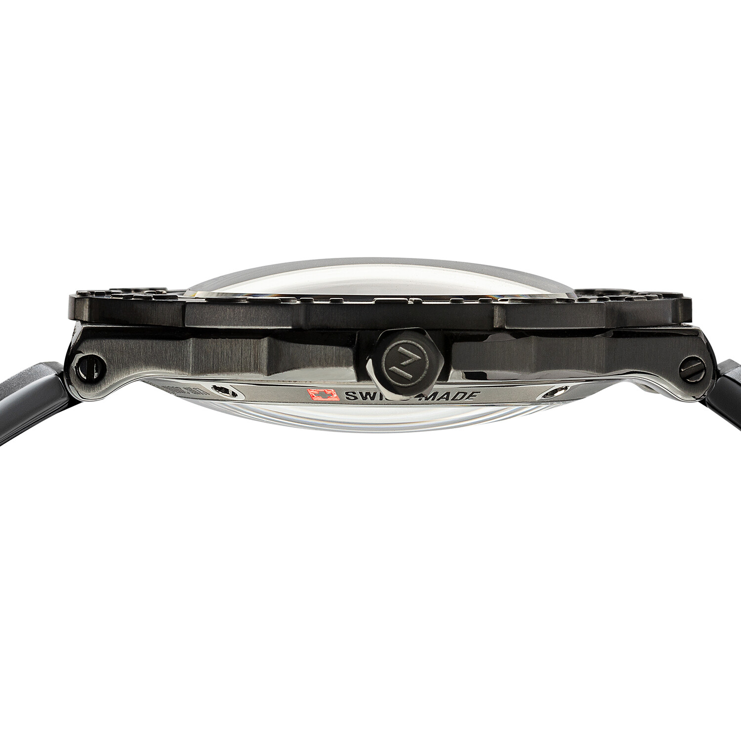 The NOVE Trident is an incredibly slim diver watch, boasting a staggering 6.8mm thickness with 200M/660ft water resistance. The unique 3-lever stopper system is precisely engineered to keep the bezel unidirectional, and can be easily cleaned after each dive. Swiss made quartz powers the Trident, and scratch-resistant Sapphire crystal ensures real world use when you’re out on the ocean.