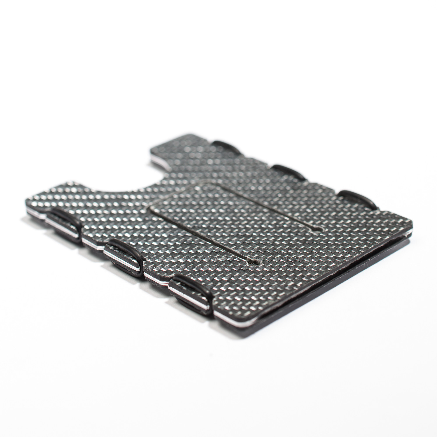 It also features a one of a kind "flat" money clip that enables it to rise up when needed and hold up to eight bills, when not in use it will lie virtually flat unlike traditional money clips. The optional aluminum RFID shield is permanently bonded to the carbon fiber and not only enhances the appearance, but also protects your credit cards from remote credit card theft.