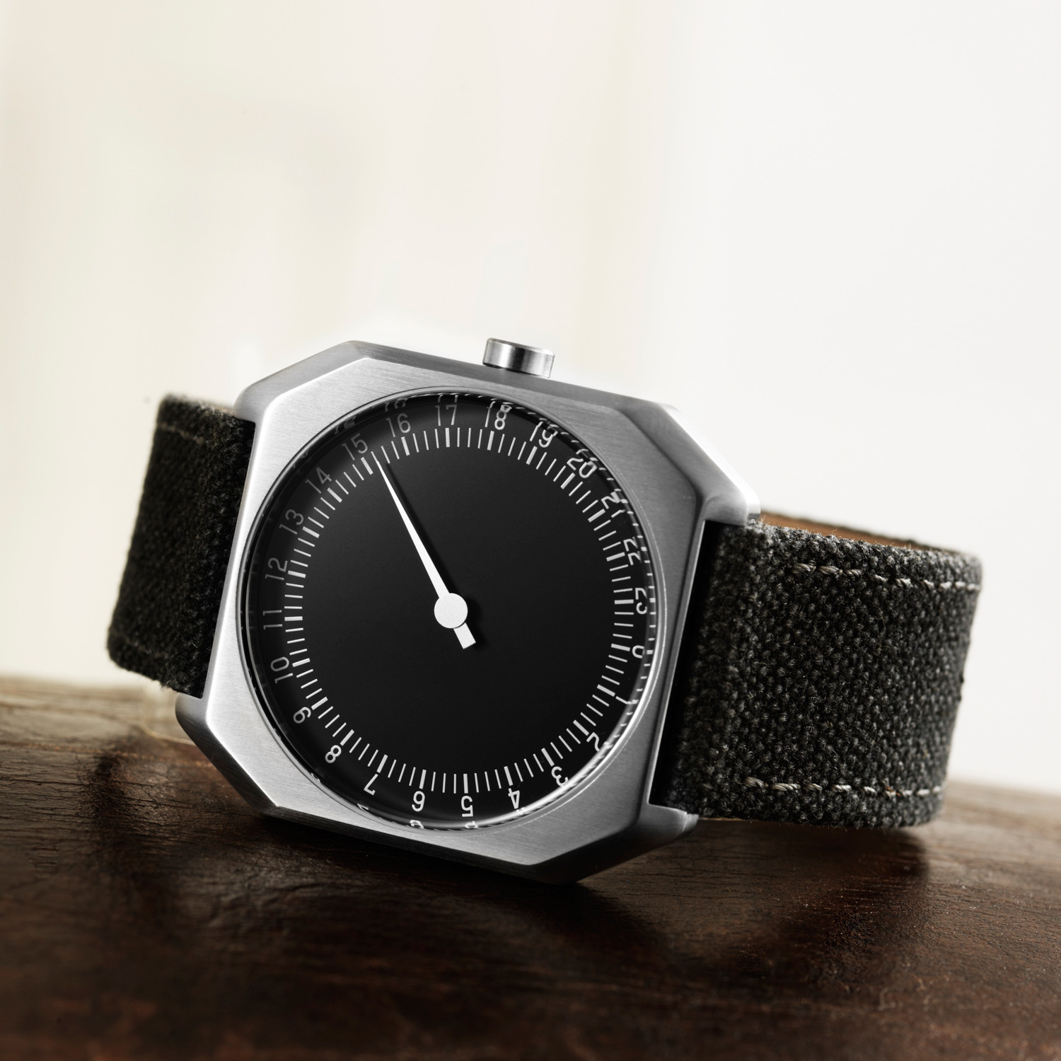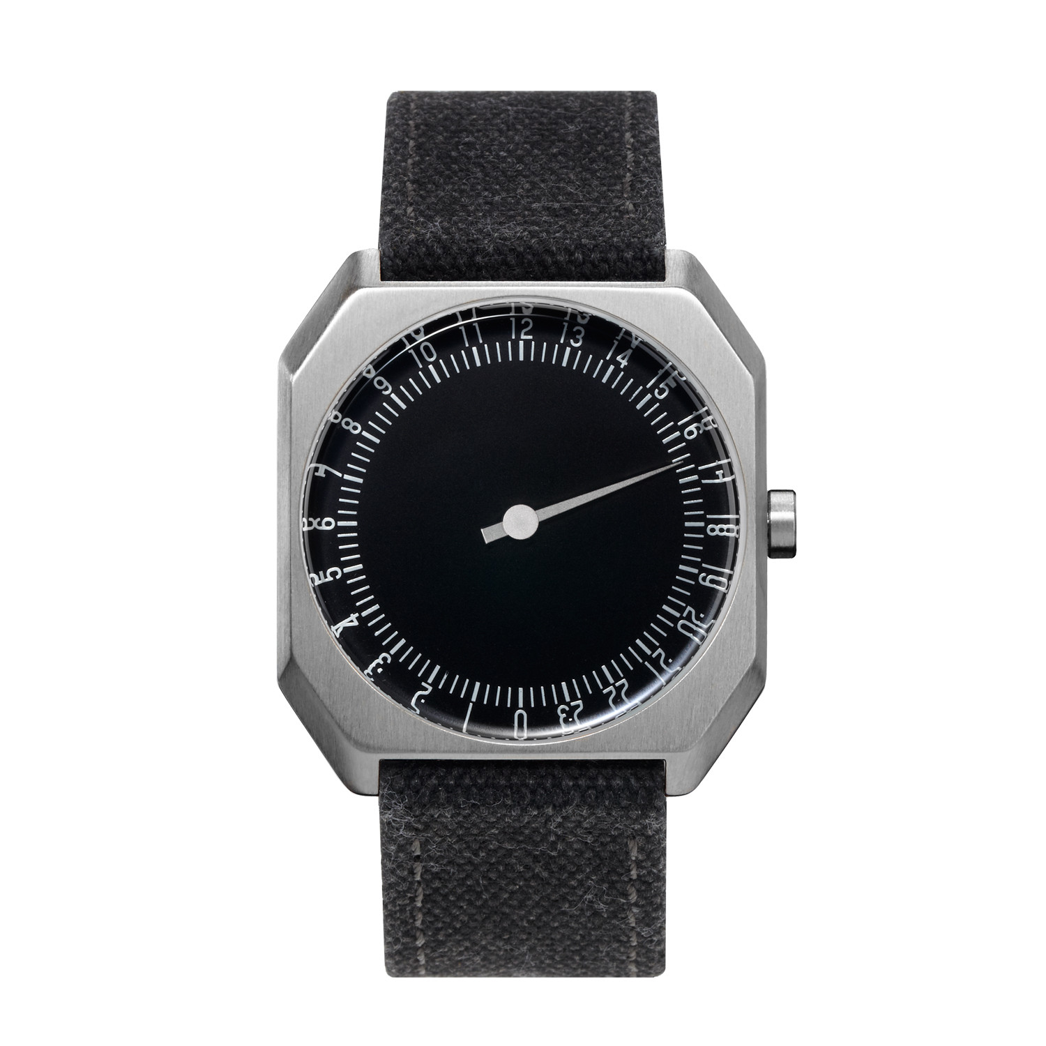 This innovative watch has a Swiss Made Ronda Caliber 505.24H GMT movement that only uses one hand that shows 24 hour time, in order to create a true slow watch that is reduced to only one necessary component. The great thing is that the 24 hour dial allows you to see the entire day in one view. This fundamentally changes the way you look at your watch, and will give you a much better consciousness about the progression of your day.
