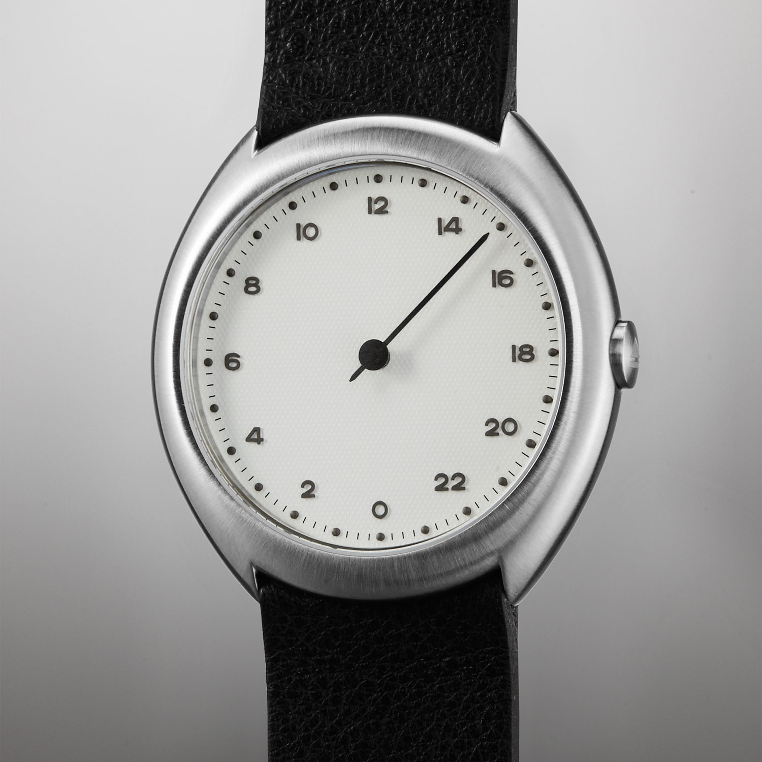 This innovative watch has a Swiss Made Ronda Caliber 505.24H GMT movement that only uses one hand that shows 24 hour time, in order to create a true slow watch that is reduced to only one necessary component. The great thing is that the 24 hour dial allows you to see the entire day in one view. This fundamentally changes the way you look at your watch, and will give you a much better consciousness about the progression of your day.