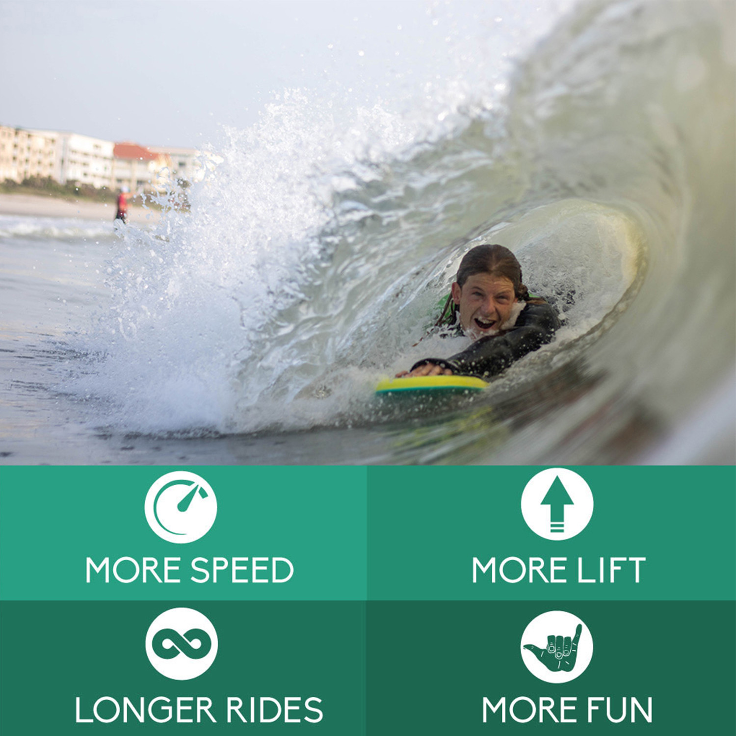 The Slyde Grom Soft Top Handboard is the ultimate starter body surfing hand plane that will turn your bodysurfing session into the time of your life. With super advanced construction, an ultra-buoyant foam core and an extra soft and sticky grip top skin with a buttery slick bottom that will have you Slyding down any wave like a pro, no matter your skill level.