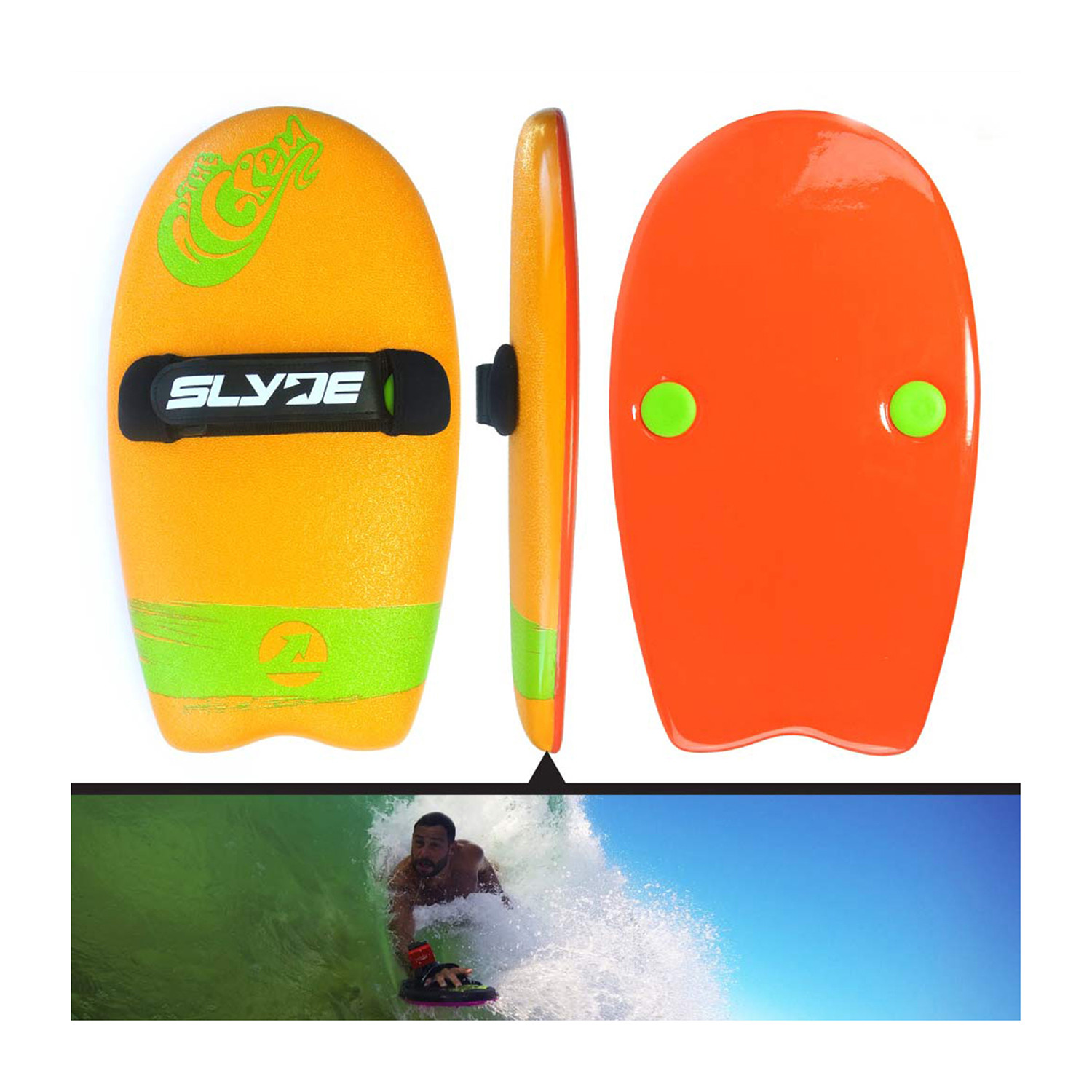 The Grom // Bodysurfing Handboard // Orange + Pilsner