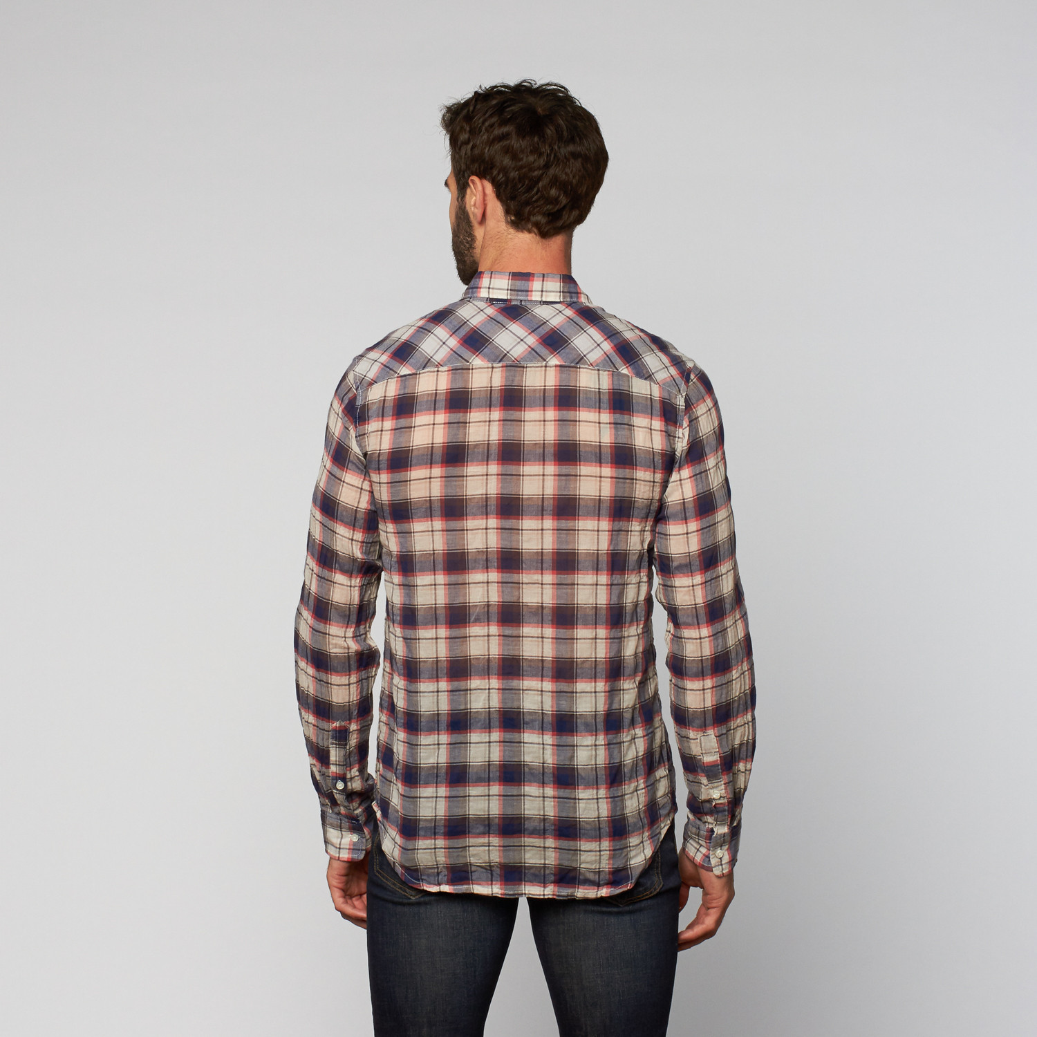 This Casual Plaid Button Up is an ideal casual you can wear any time. Made in a lightweight textured cotton, it's dyed in a classic plaid that's perfect for pairing with dark jeans and slim khakis.