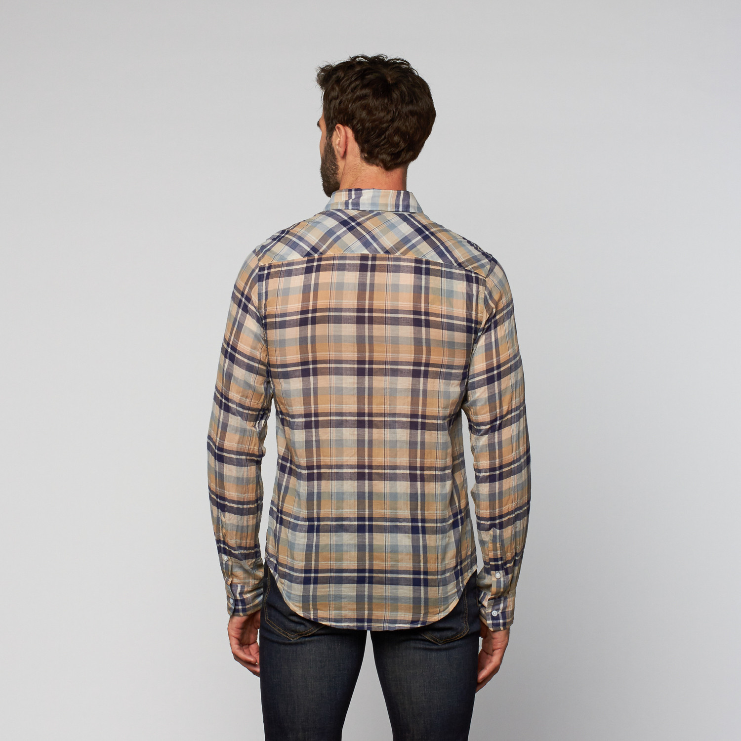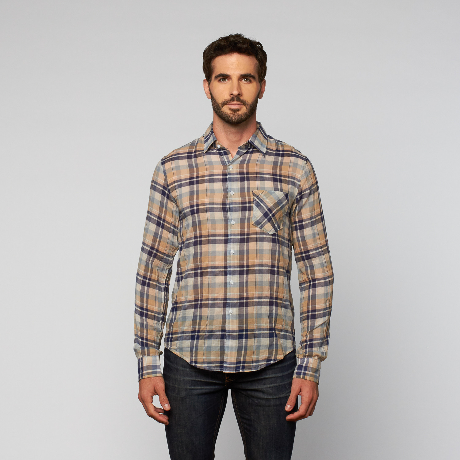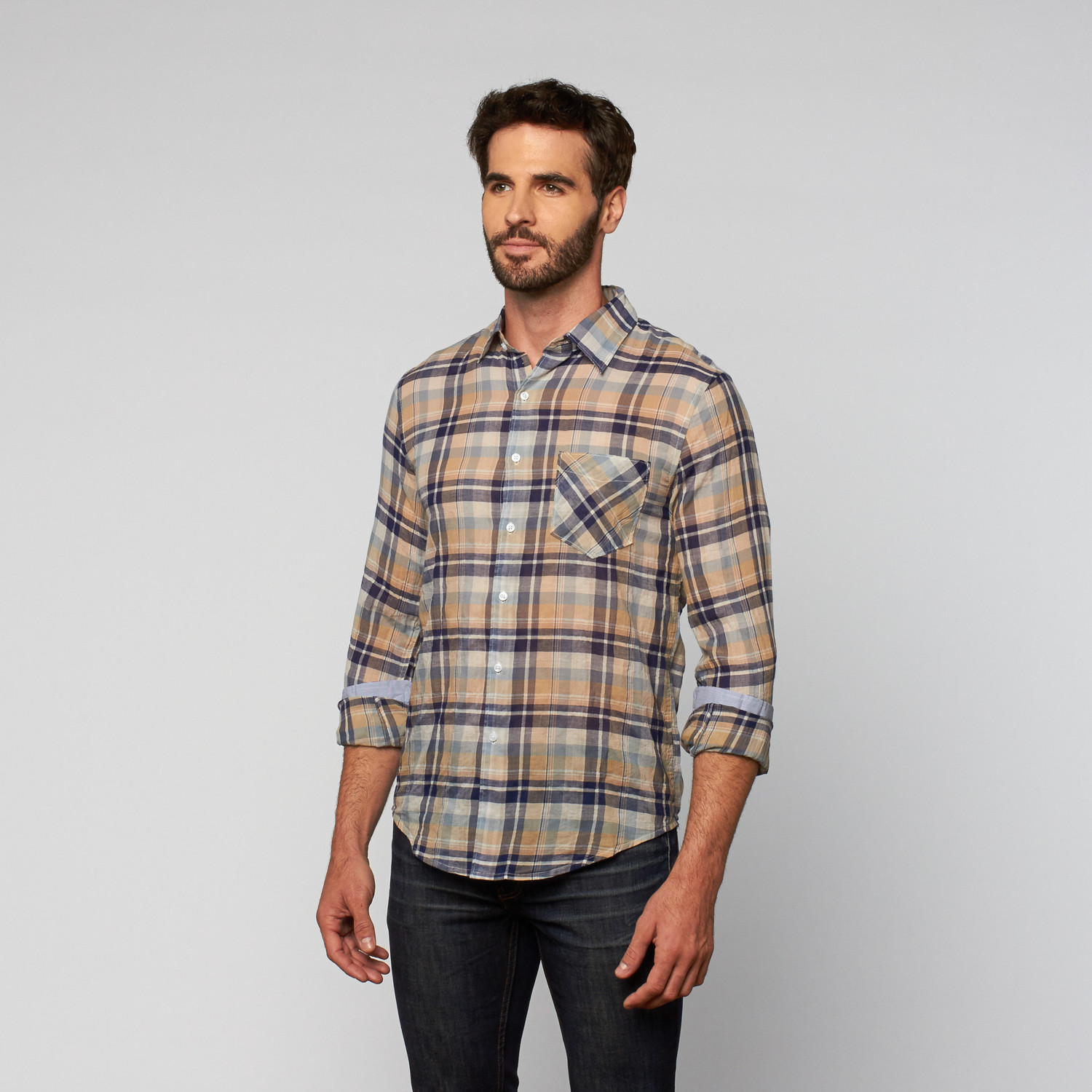 This Casual Plaid Button Up is an ideal casual you can wear any time. Made in a lightweight textured cotton, it's dyed in a classic plaid that's perfect for pairing with dark jeans and slim khakis.
