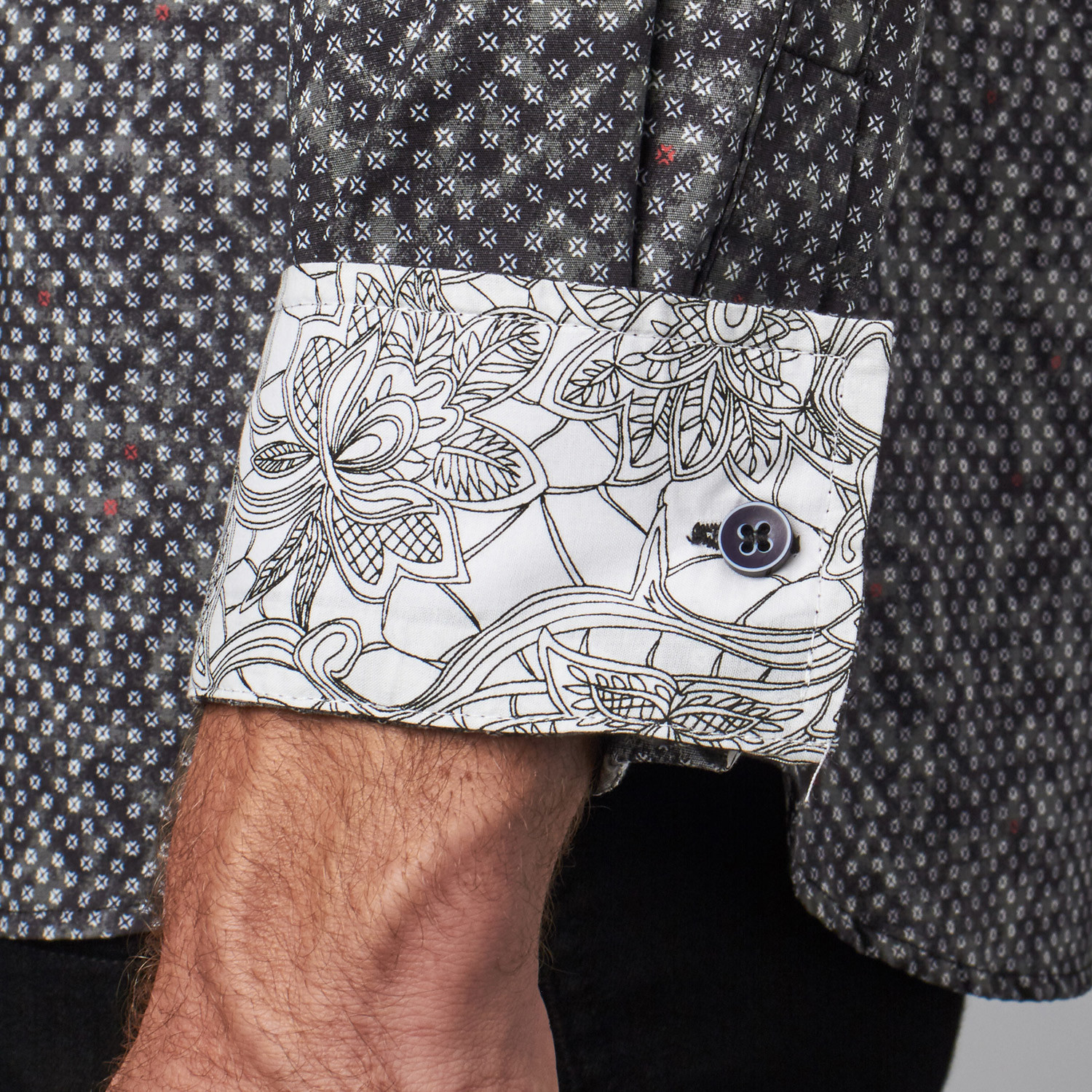 Long-Sleeve Woven Button-Up // Black Tiny Print