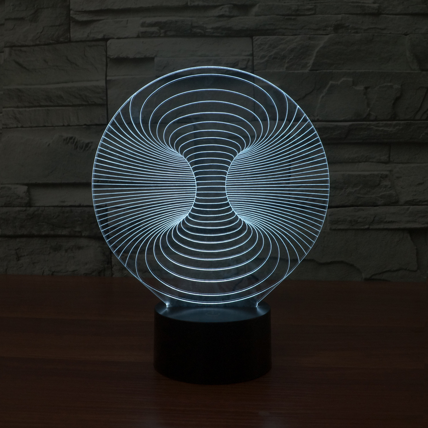The 3D Illusion Lamp generates some of the most spectacular 3-D images that you have ever seen. Part sculpture, part warm LED lighting, and totally mind-boggling, this Whiplash will change your world. These geometrical dioramas are outlined in colorful light and appear as 3-D images or holograms in the middle of the air.