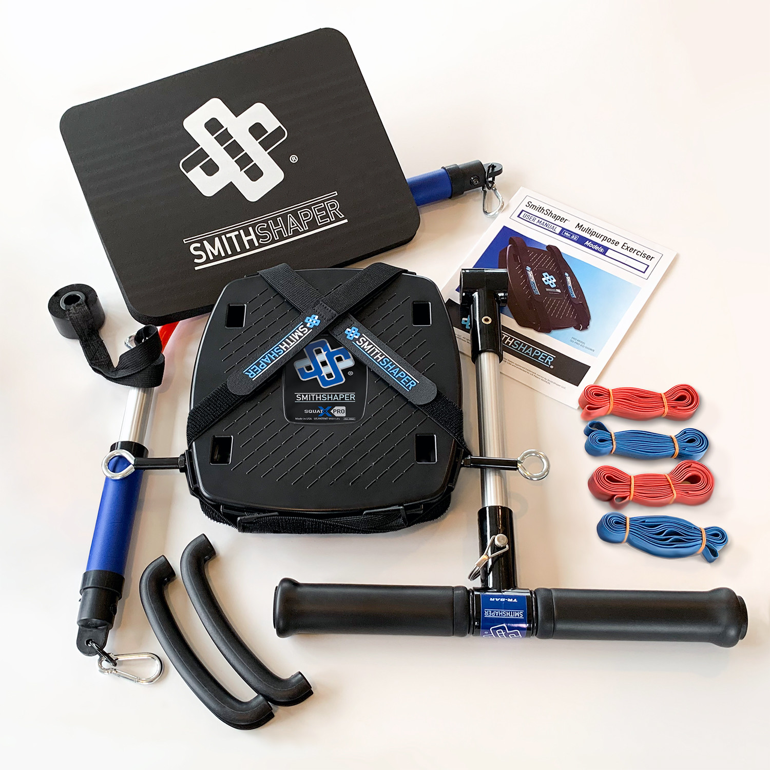 The SmithShaper® TR-BAR PLUS is the big brother of the original T-BAR, complete with a wide, detachable grip top bar. This multipurpose exerciser provides a highly effective way to perform a variety of resistance exercises to tone, shape, strengthen, and build muscle. It enables movement, balance, core training, and a variety of full-body muscle development exercises while retaining the ability to instantly transform into a traditional straight resistance bar with the included door anchor. Use the TR-BAR in conjunction the SQUATX to perform shoulder presses and chest presses when doing SQUATX Power Squats and more.