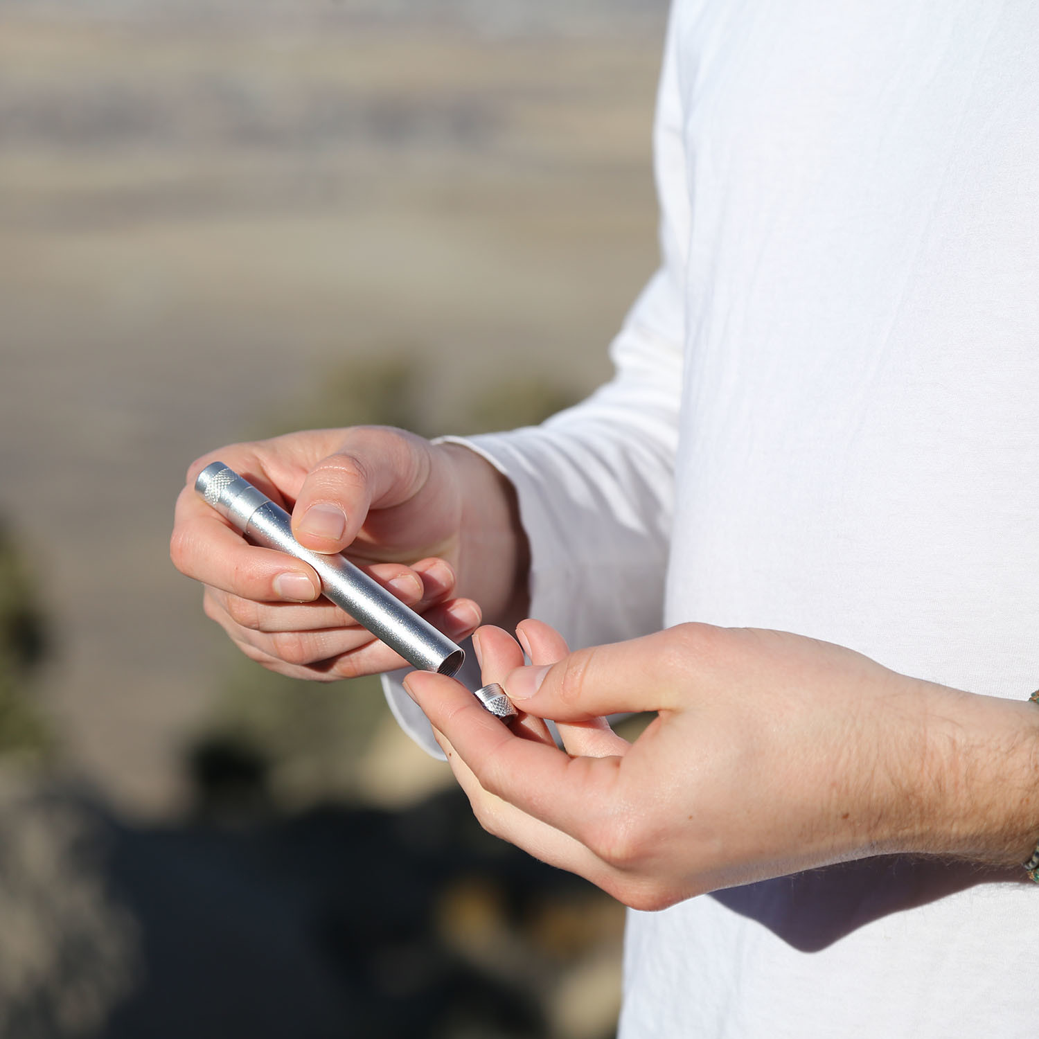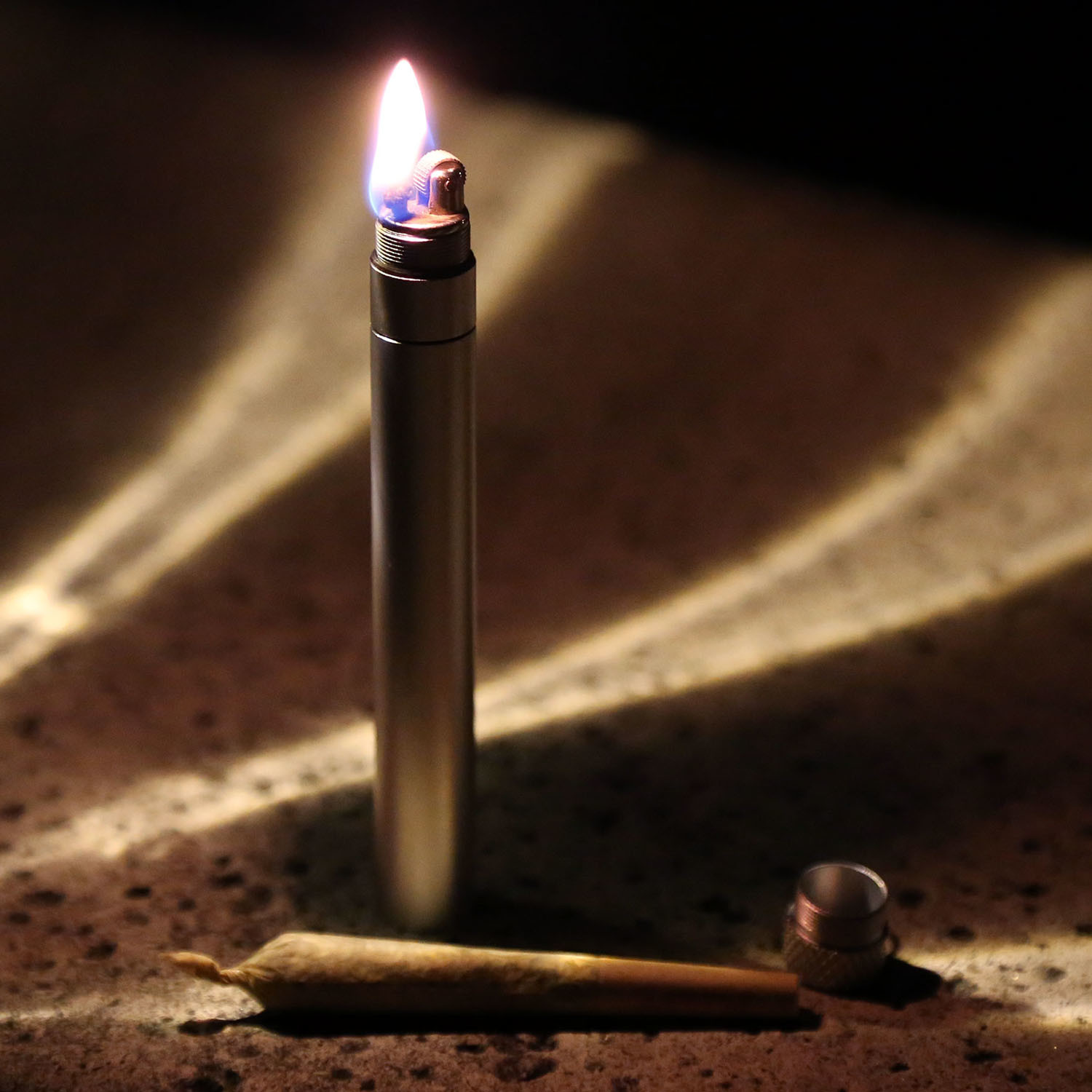 The Stashlight is a refillable lighter and airtight stash tube designed for ultimate travel convenience. Compatible with standard lighter fluid, the built-in flint lighter is reusable and wind resistant. The anodized aluminum construction makes it waterproof and extremely durable to handle life on the road.
